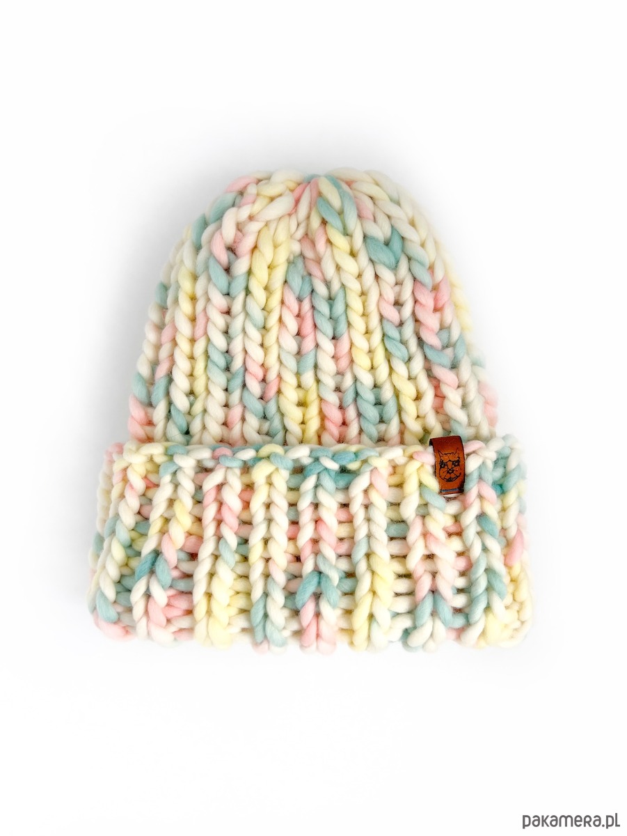 Czapka oversize z grubej wełny pasteowe kolory