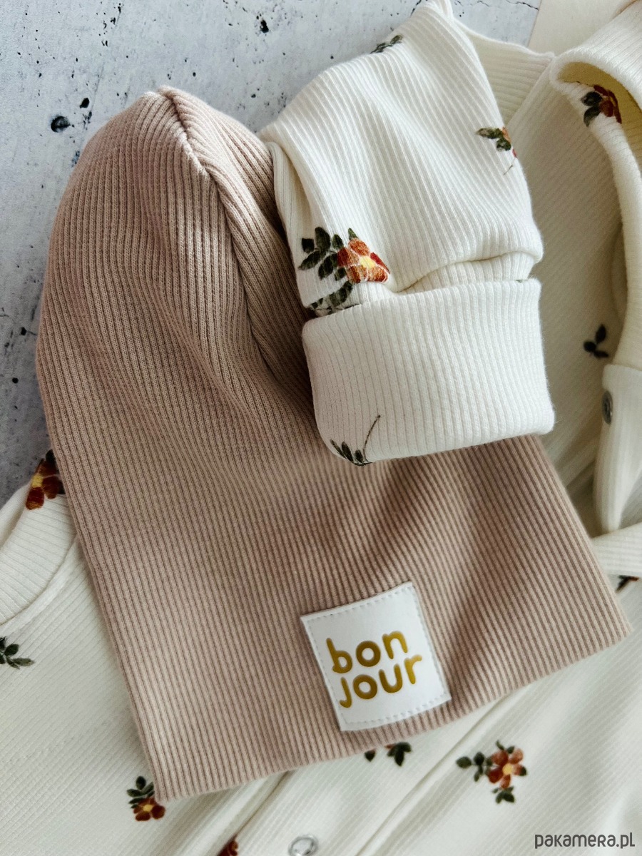 Czapka została uszyta z podwójnej warstwy dzianiny ściągaczowej typu prążek, która jest nie tylko miękka i miła w dotyku, ale także elastyczna, idealnie dopasowując się do głowy dziecka. Materiał ten zapewnia doskonałą ochronę przed wiatrem i chłodem, co sprawia, że czapka jest idealna na spacery w chłodniejsze dni. Dodatkowo, dzianina, z której szyjemy nasze czapki, posiada certyfikaty bezpieczeństwa, co gwarantuje, że jest bezpieczna dla delikatnej skóry dziecka.