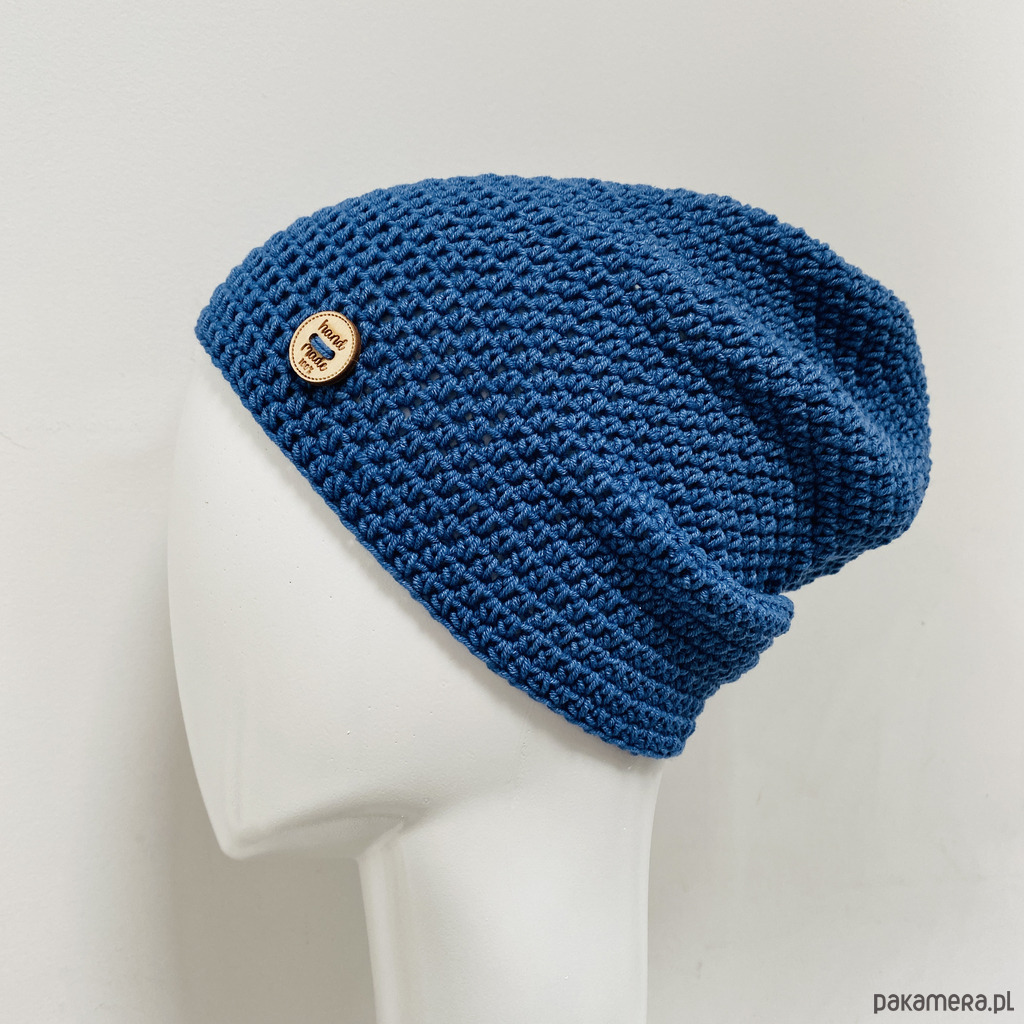 Czapkę przejściową wykonałam z wysokiej jakości włóczki bawełniano-akrylowej, która zapewnia wygodę noszenia przez cały dzień.