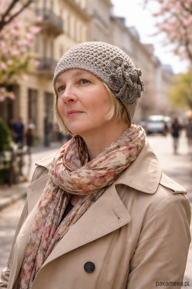 Świetnie układa się na głowie i pasuje zarówno do płaszcza, jak i bardziej swobodnych stylizacji.