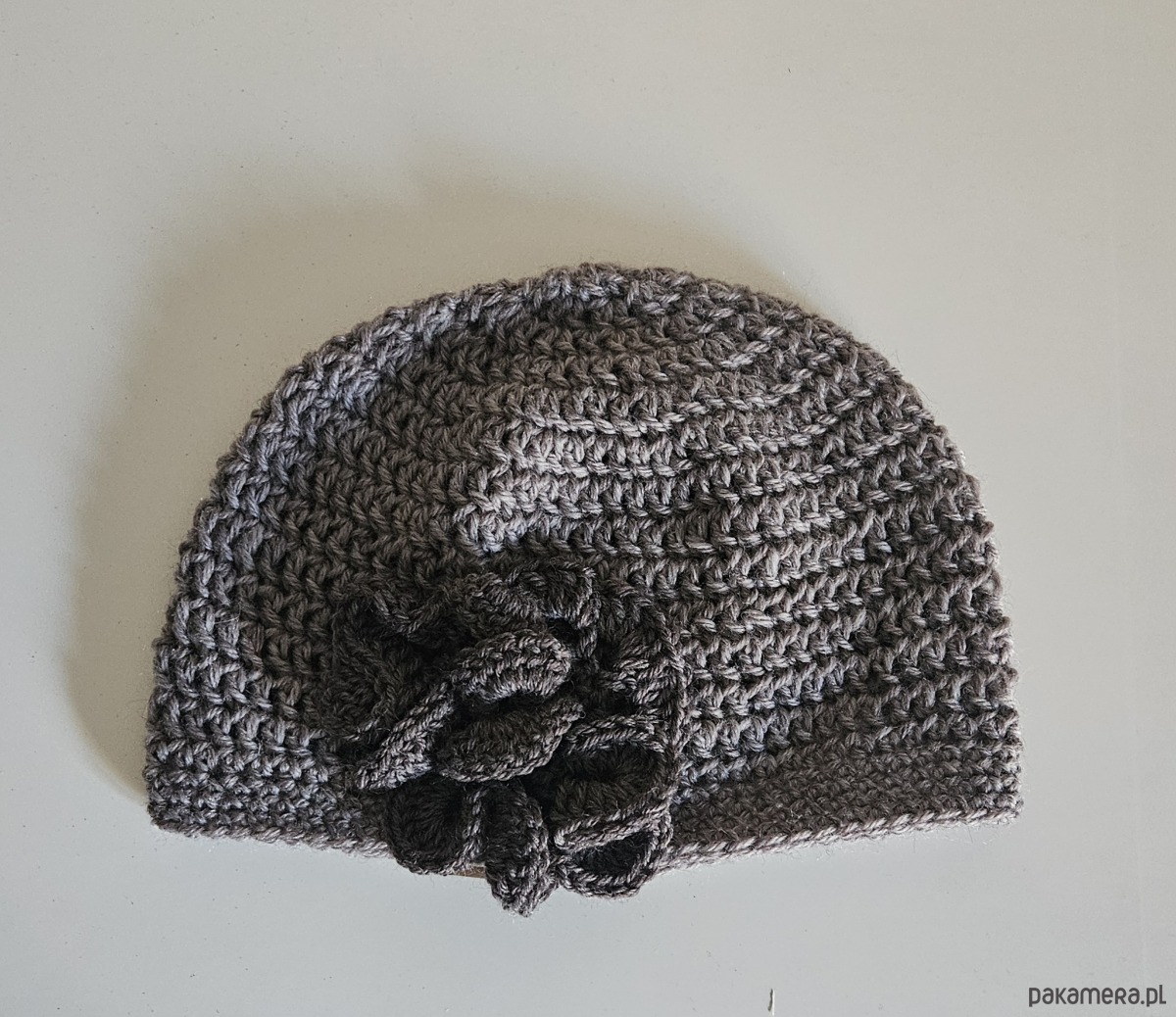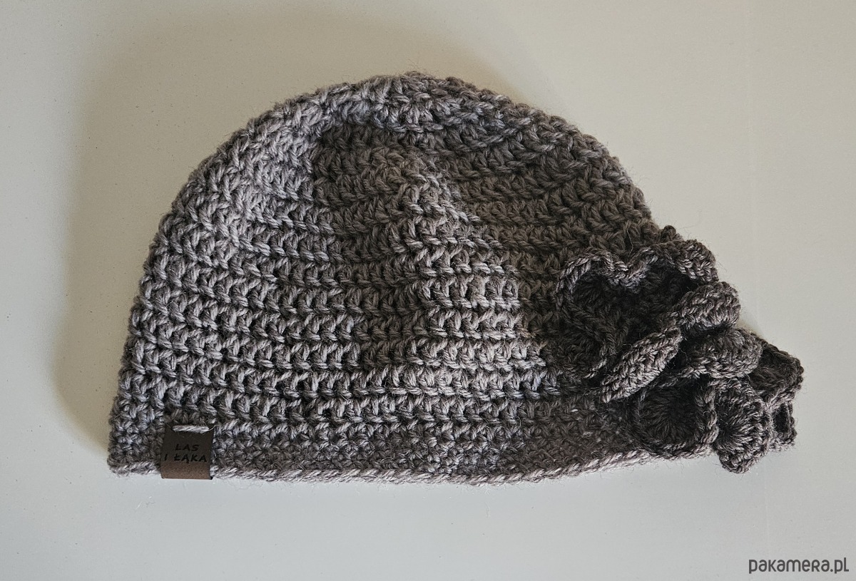 Czapka wykonana ręcznie na szydełku z 100% naturalnej wełny. Miękka, ciepła i przyjemna w dotyku — idealna na chłodniejsze dni przejściowe.