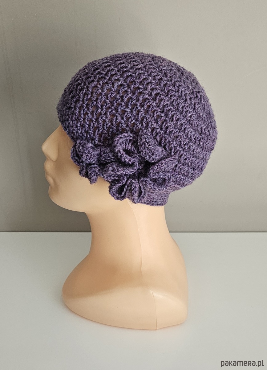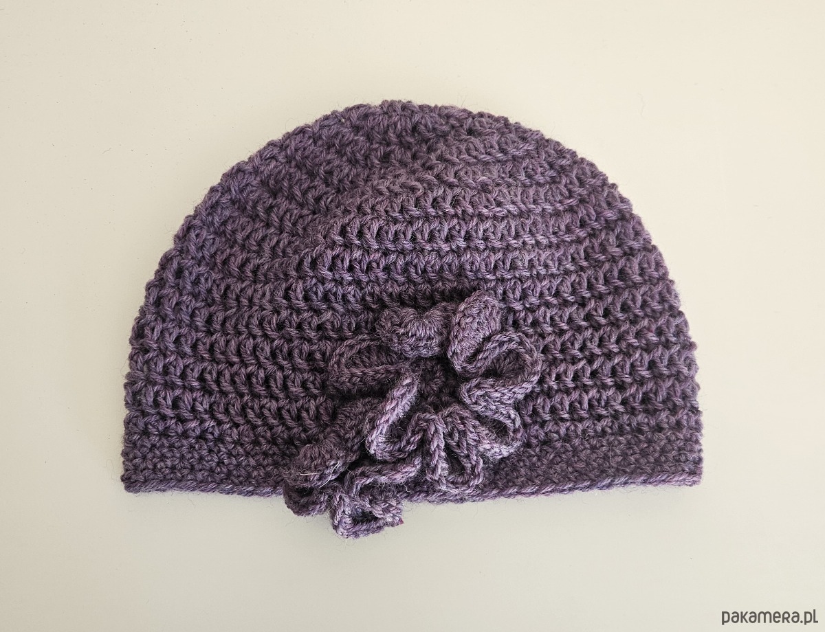 Czapka wykonana ręcznie na szydełku z 100% naturalnej wełny. Miękka, ciepła i przyjemna w dotyku — idealna na chłodniejsze dni przejściowe.