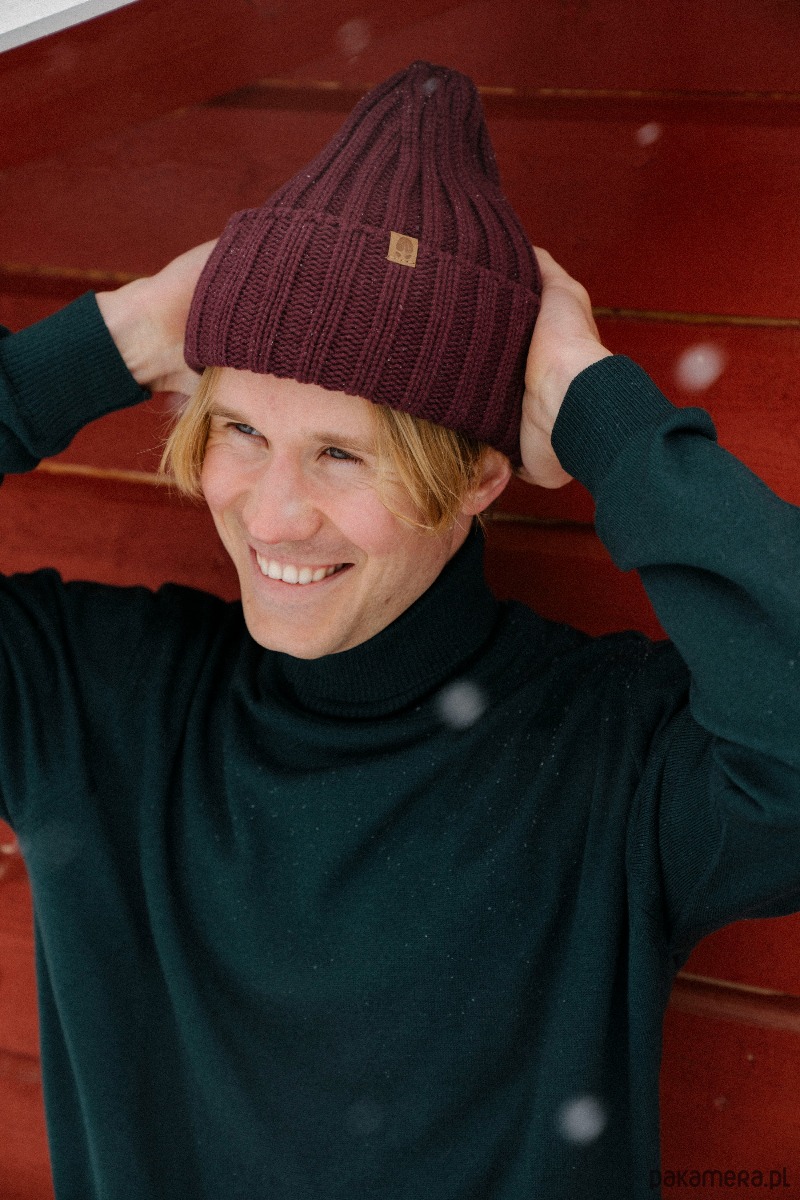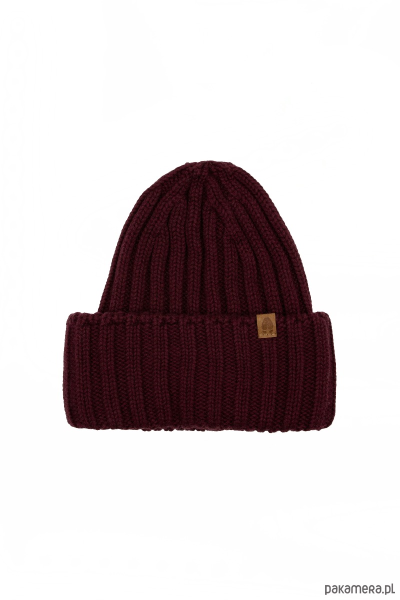 Czapka Rosomak Bordowy 100% Wełniana Merino Gruby Mięsisty Splot