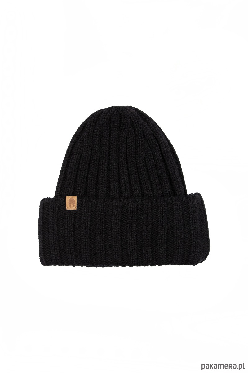 Czapka Rosomak Czarny 100% Wełniana Merino Gruby Mięsisty Splot