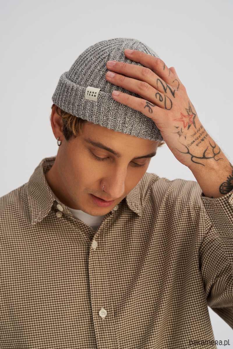 Czapka rybaka to nowoczesna alternatywa dla klasycznej beanie. Krótszy fason, noszony nad uszami świetnie wpisuje się zarówno w miejski styl, jak i w górskie klimaty. Wykonana z ciepłej przędzy o luźnym splocie i wykończona podwójnym wywinięciem, wygodnie układa się na głowie, zapewniając komfort w chłodne dni. Z boku znajduje się mała naszywka z logo.