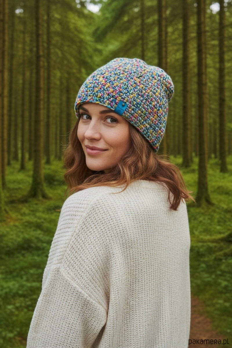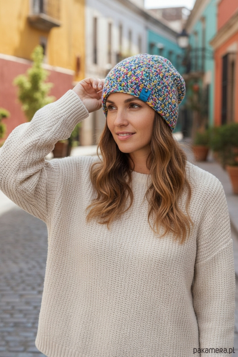 Średniej grubości czapka smerfetka wykonana ręcznie na szydełku