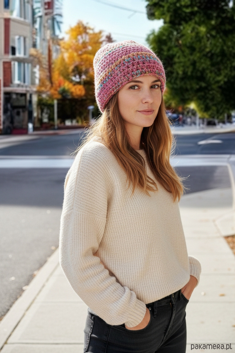 Średniej grubości czapka smerfetka wykonana ręcznie na szydełku