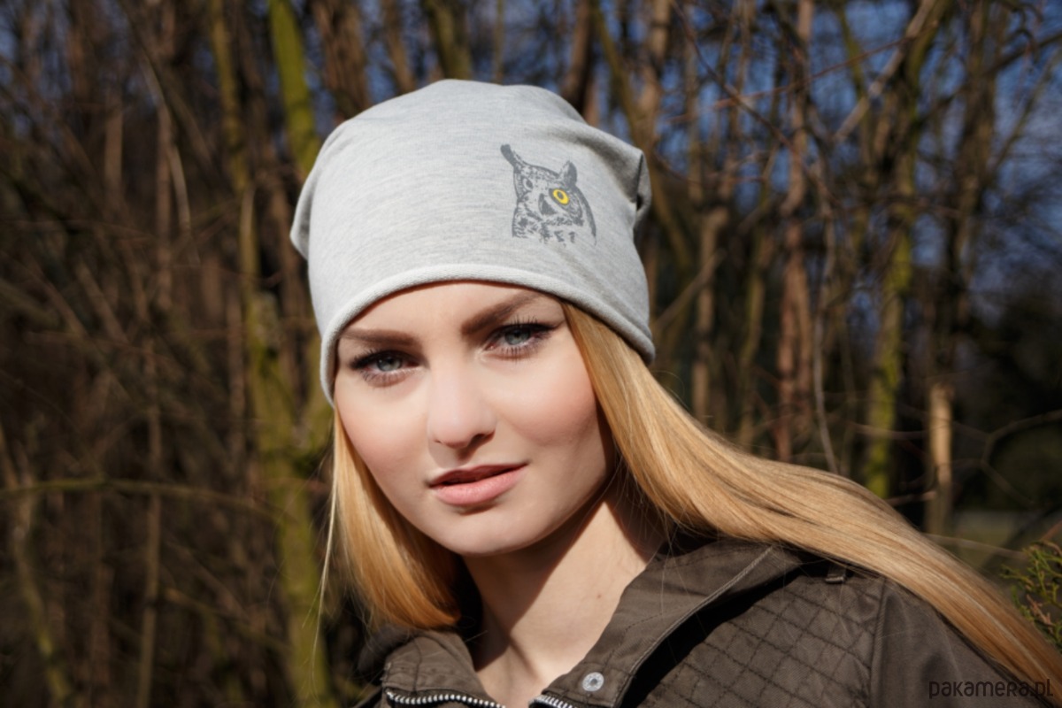Szara Czapka z Nadrukiem Sowy – Styl i Komfort na Każdą Okazję