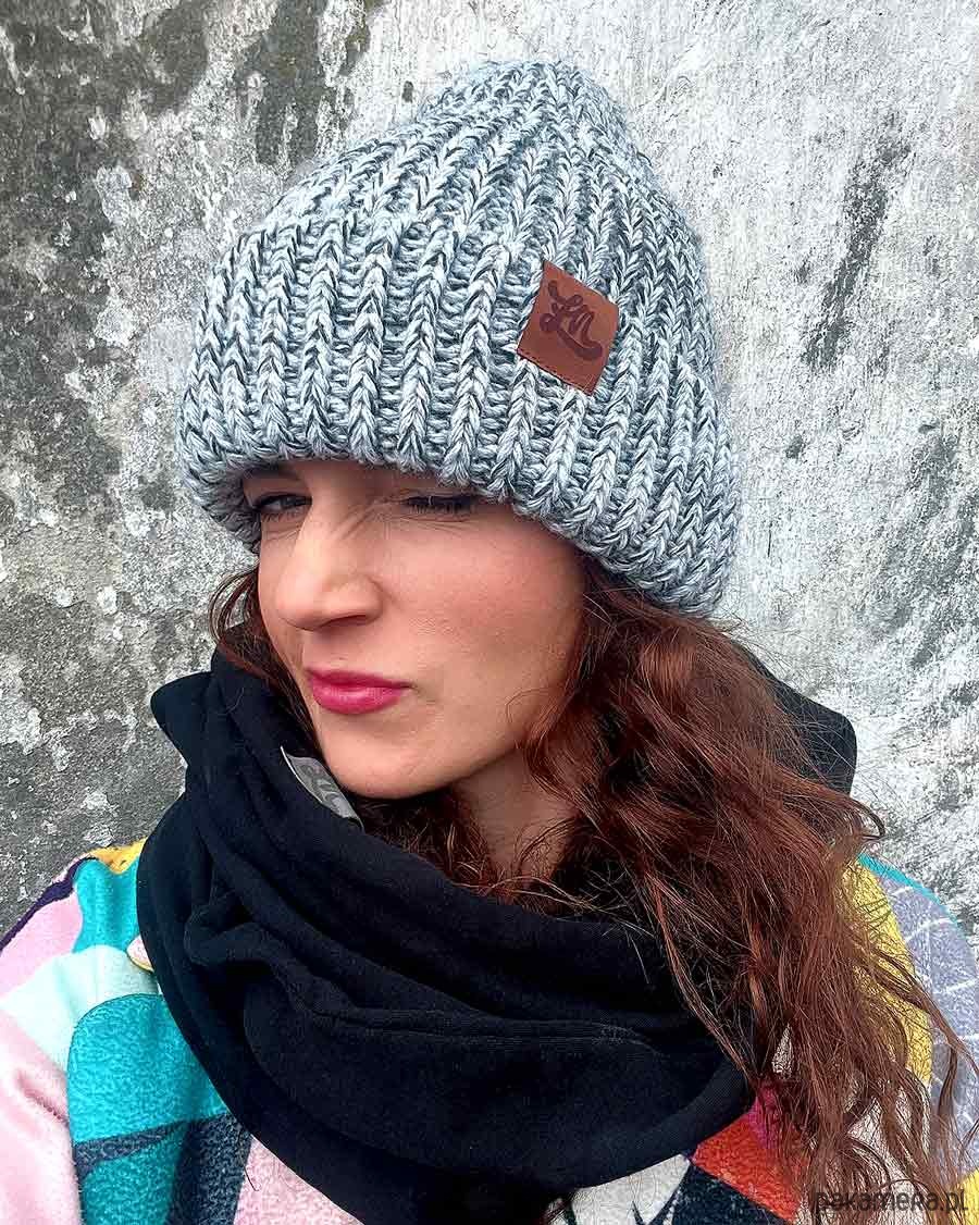 Czapka damska / męska zimowa surferska oversize szara 2w1. Duza czapka dziana na jesień / zimę . Czapkę można wywinąć lub nosić jako smerfetkę. Doskonale grzeje, pięknie wygląda, produkcja w 100% polska. Na przodzie naszywka Łap Nas.