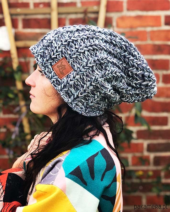 Duza czapka dziana na jesień/zimę. Doskonale grzeje, pięknie wygląda, produkcja w 100% polska. Na przodzie naszywka Łap Nas.