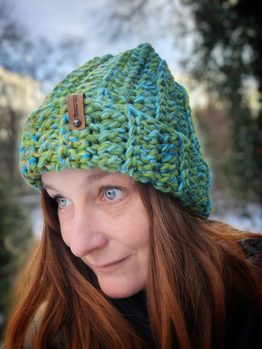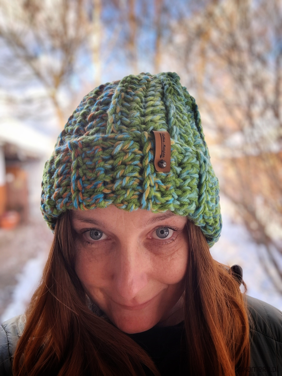 Ta czapka to ręcznie wykonany, gruby beanie na szydełku, który zachwyca prostotą i wyrazistym kolorem. Wykonana z miękkiej, mięsistej włóczki rozmaitych odcieniach zieleni i błękitu doskonale sprawdzi się w chłodniejsze dni, zapewniając ciepło i komfort.