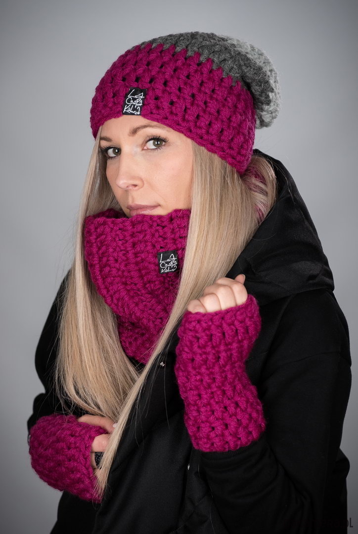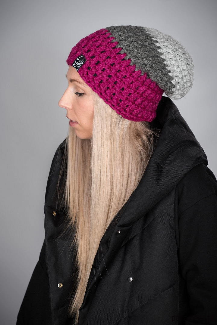Trójkolorowa czapka TRIQUENCE jest ręcznie robiona, z wysokiej jakości włóczki, co czyni ją miękką i miłą w dotyku. Czapka jest długa, mięsista i ażurowa. Gruby luźny splot sprawia, że czapka świetnie się układa i oddycha.