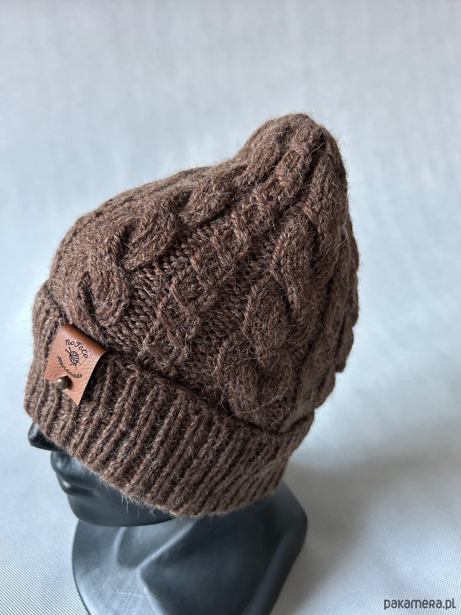 Zimowa, niezwykle ciepła, miękka i przyjemna w dotyku czapka z wełny naturalnej