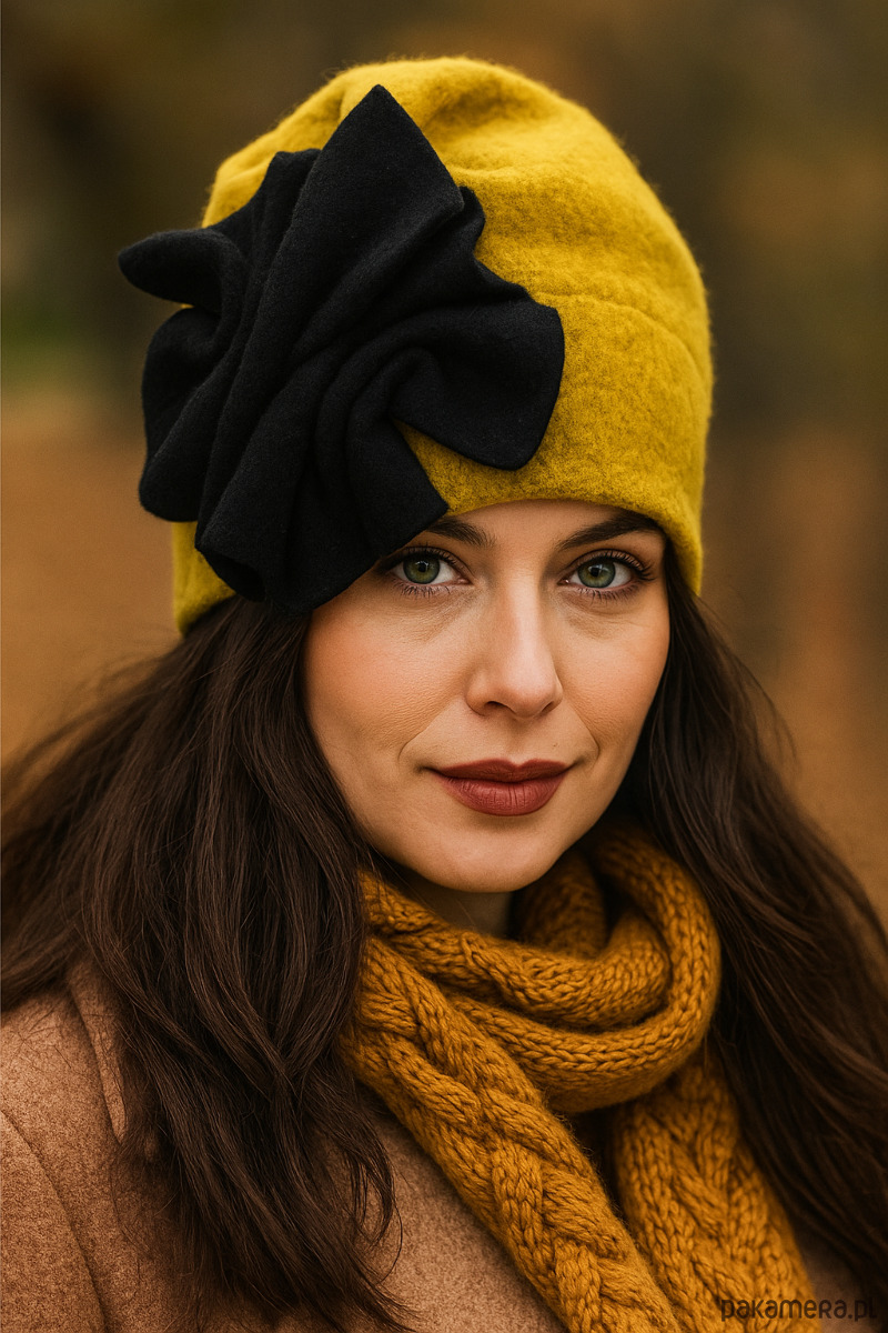 Piękna czapka szyta ręcznie z włoskiej wełny. Podszewka z elastycznej dzianyny, dzięki temu czapka jest przyjemna w noszeniu.