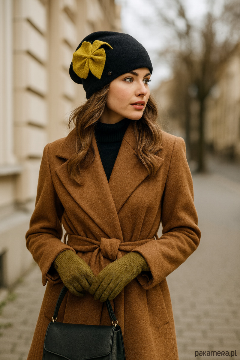 Piękna czapka szyta ręcznie z włoskiej wełny. Podszewka z elastycznej dzianyny, dzięki temu czapka jest przyjemna w noszeniu.