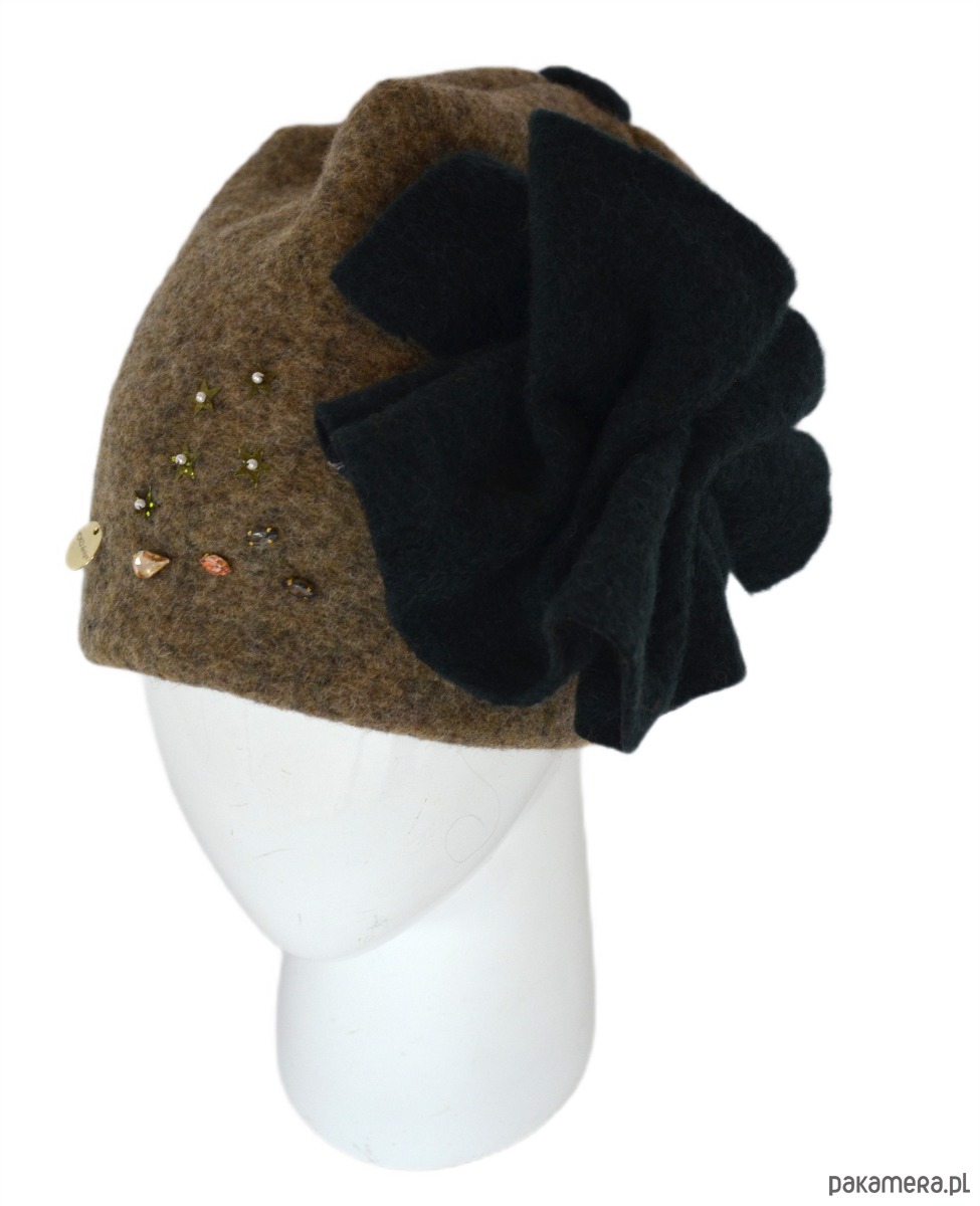 Piękna czapka szyta ręcznie z włoskiej wełny. Podszewka z elastycznej dzianyny, dzięki temu czapka jest przyjemna w noszeniu.