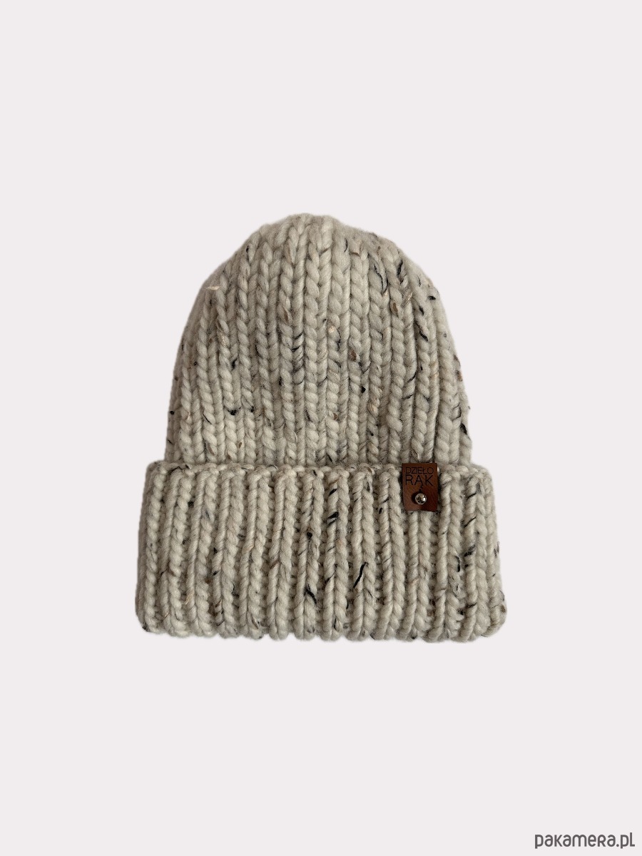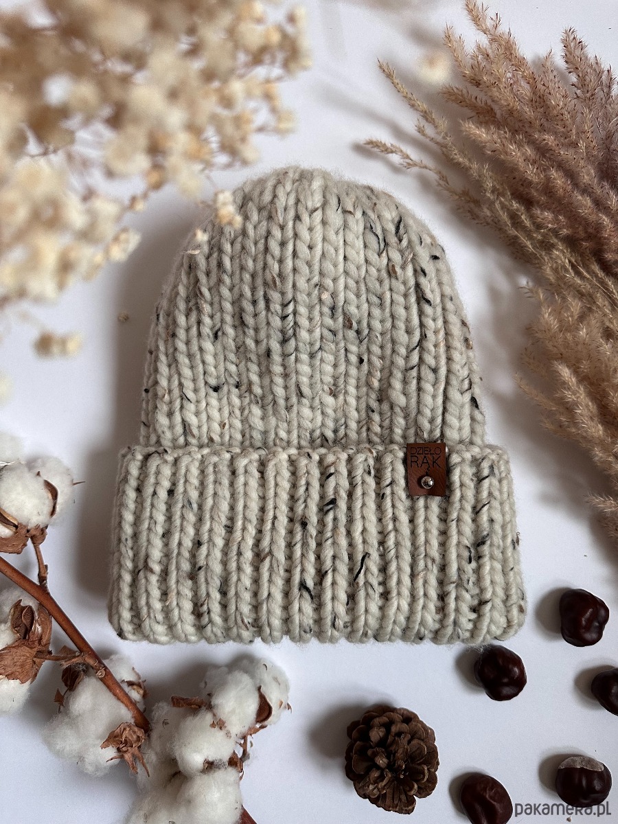Zimowa, gruba czapka wełniana w ciekawym kolorze tweed naturalny.