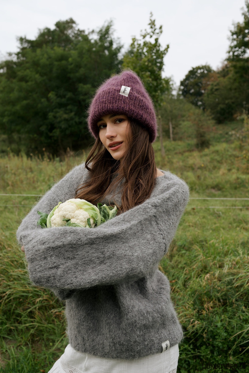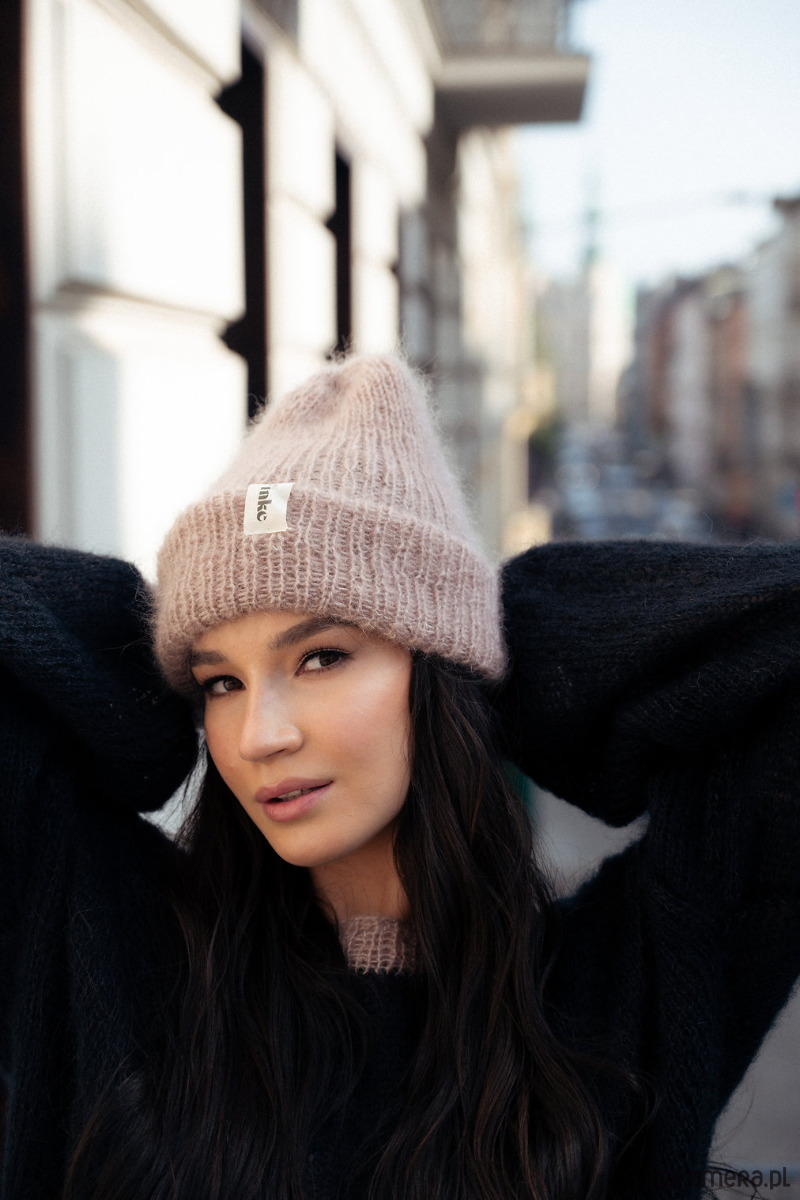 Gruba, ciepła i włochata czapka z dużym wywiniętym sciągaczem, ręcznie robiona na drutach. Dobierz rozmiar mierząc swój obwód głowy.