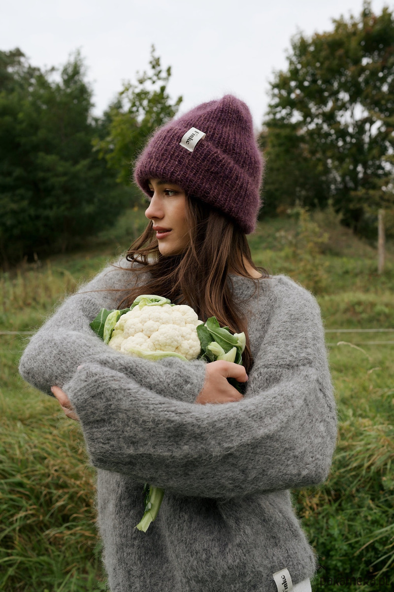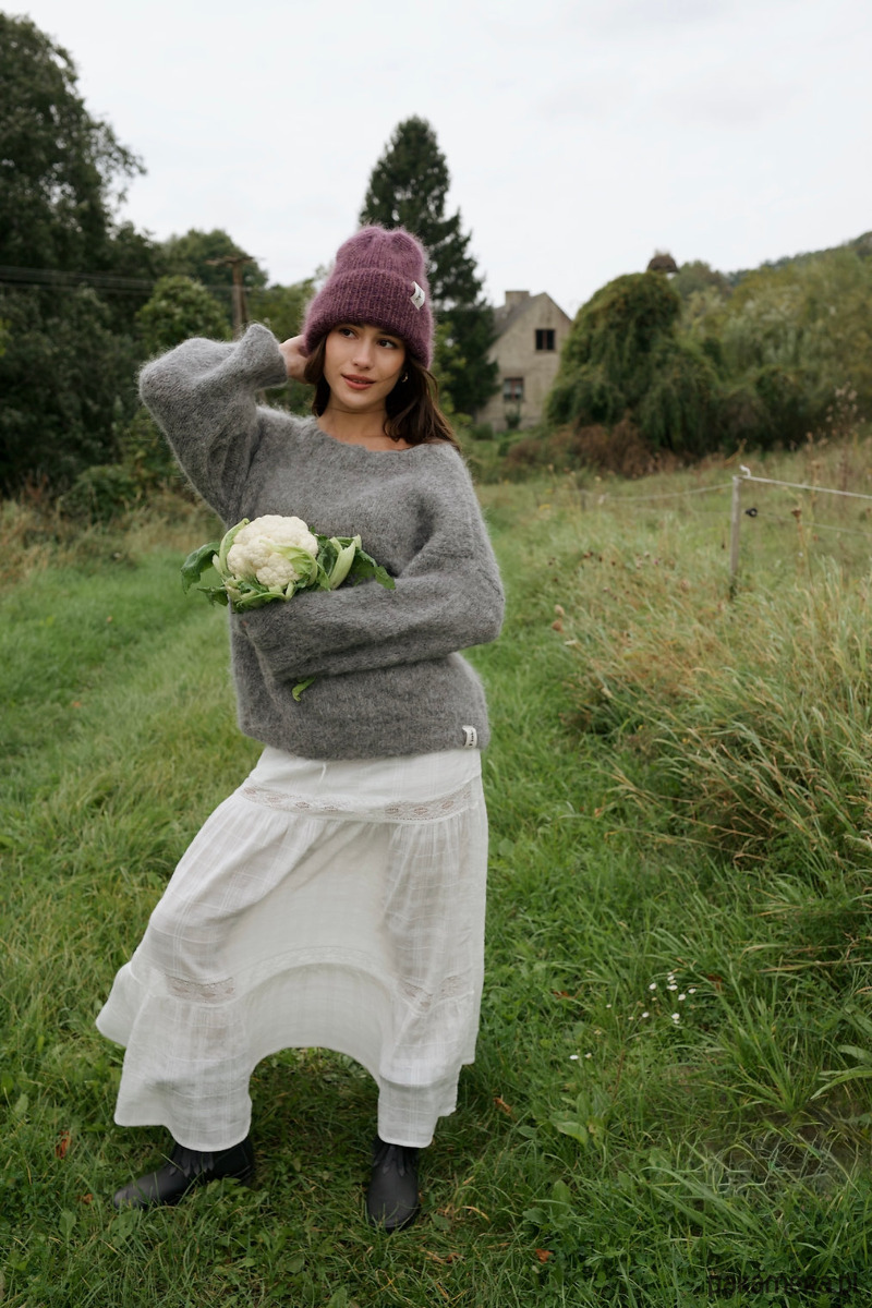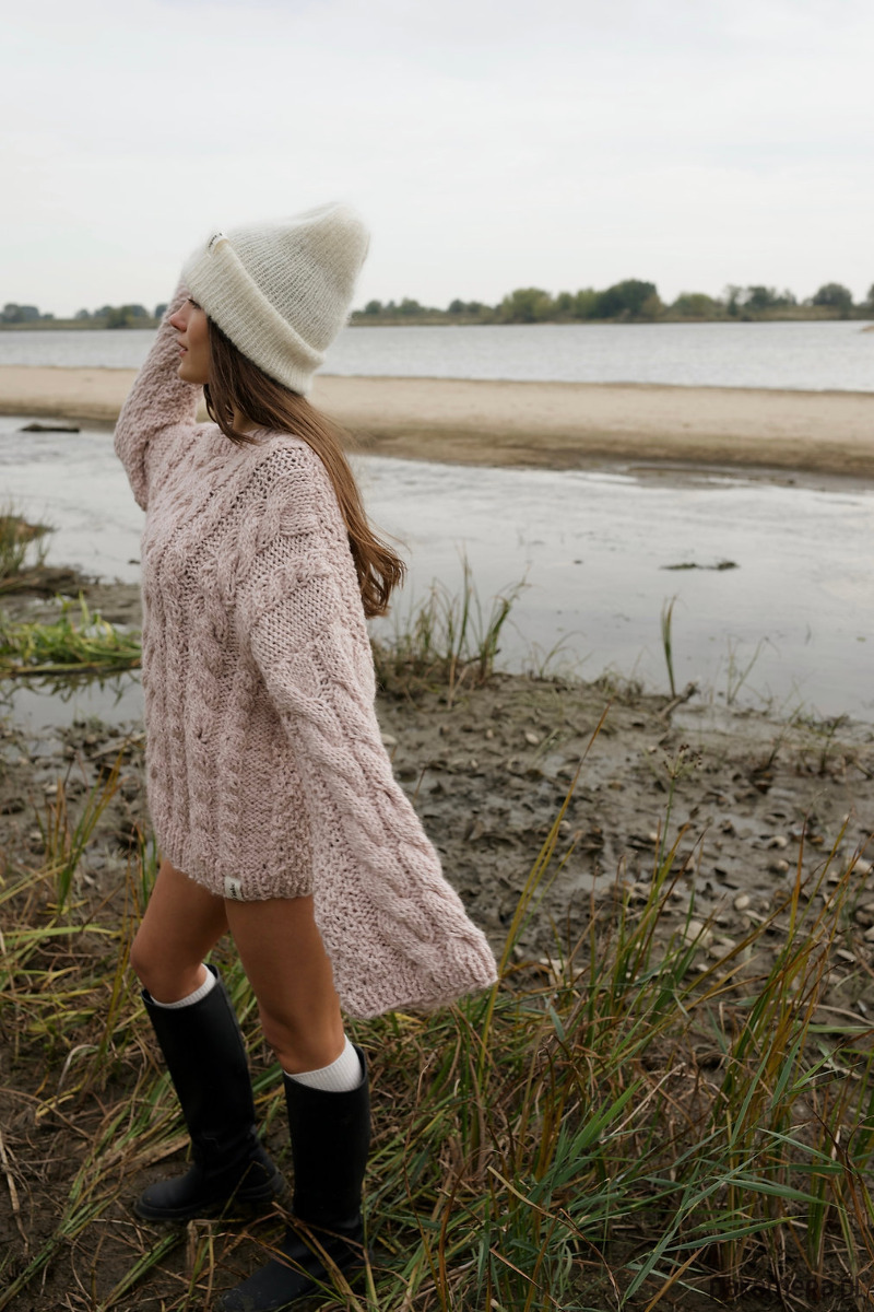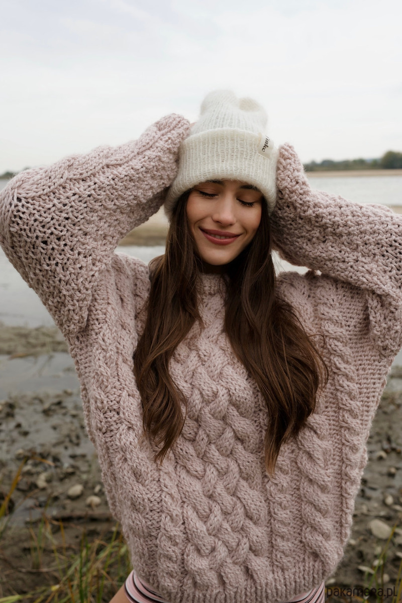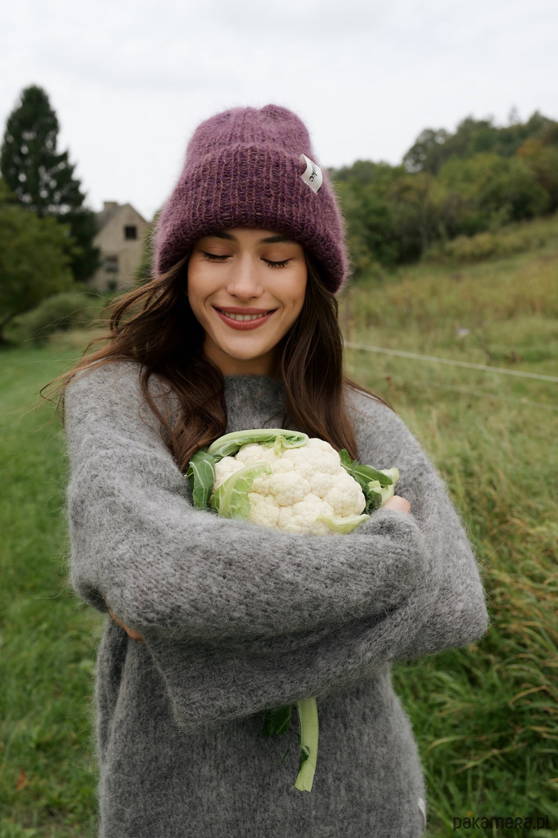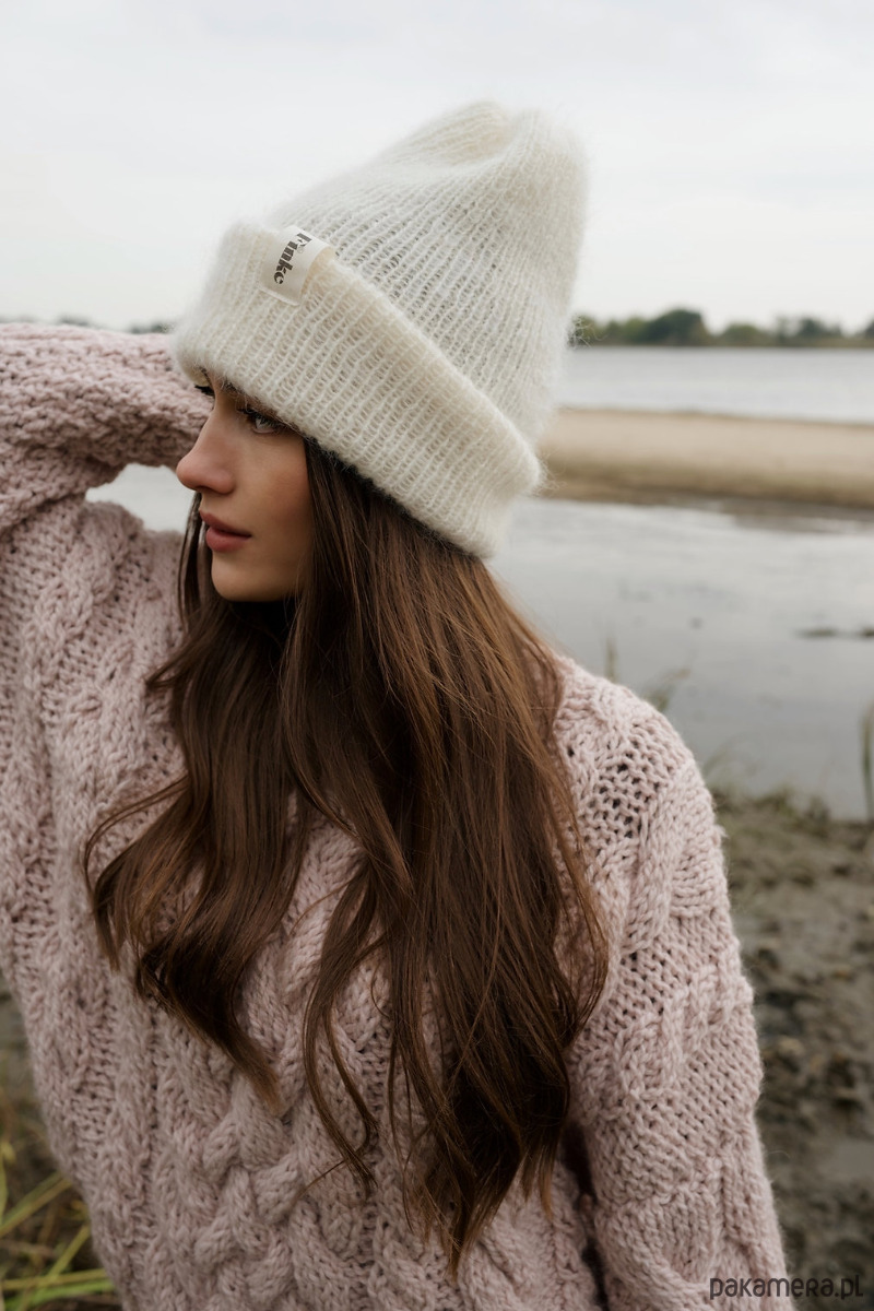 Gruba, ciepła i włochata czapka z dużym wywiniętym sciągaczem, ręcznie robiona na drutach. Dobierz rozmiar mierząc swój obwód głowy.