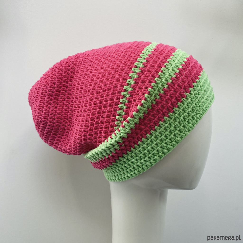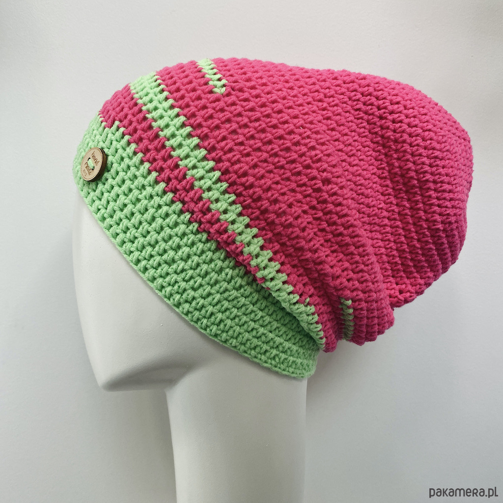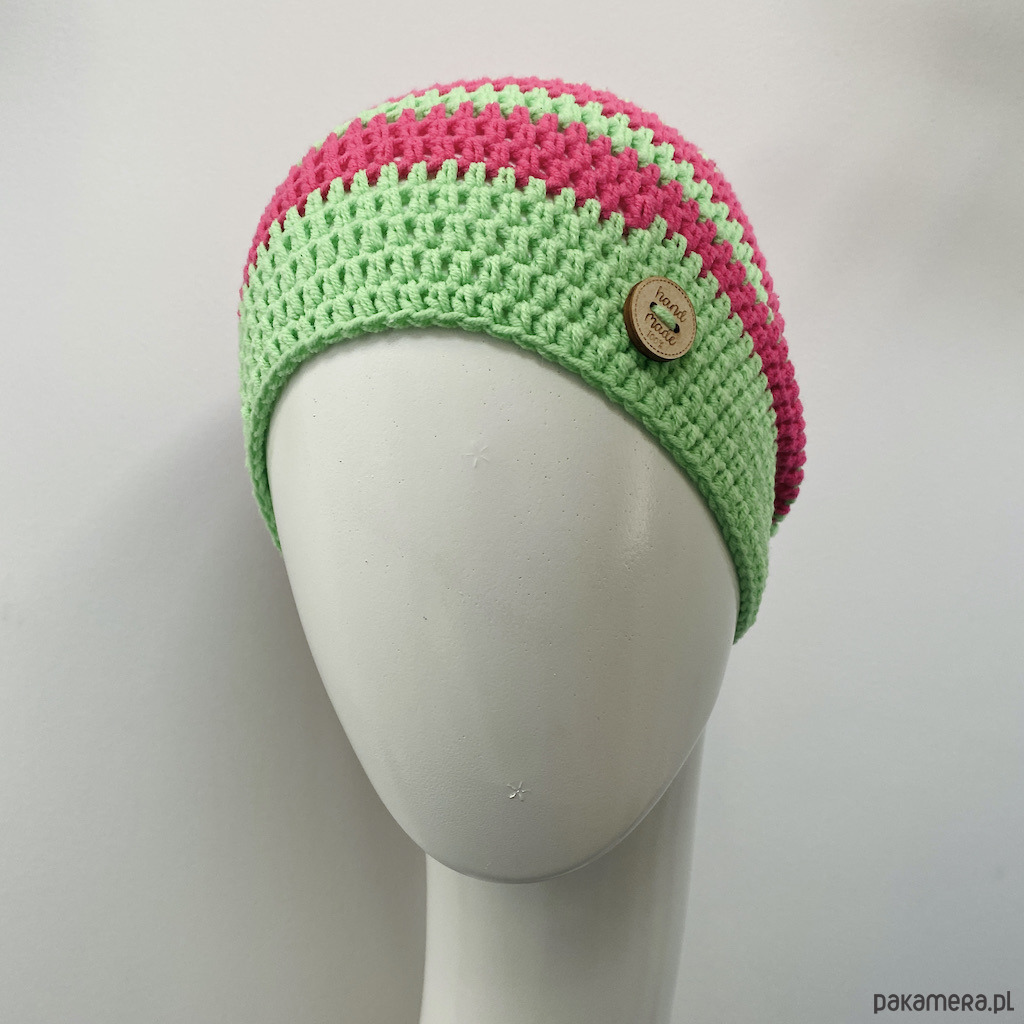 Czapkę wykonałam z wysokiej jakości włóczki bawełniano-akrylowej, która zapewnia wygodę noszenia przez cały dzień.
