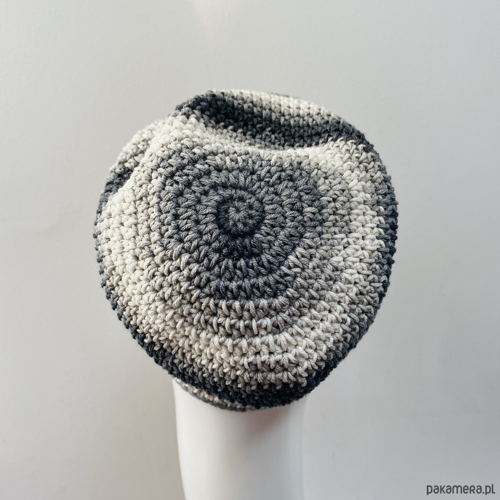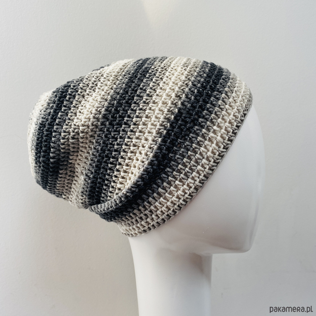 Czapkę wykonałam z wysokiej jakości włóczki bawełniano-akrylowej, która zapewnia wygodę noszenia przez cały dzień.