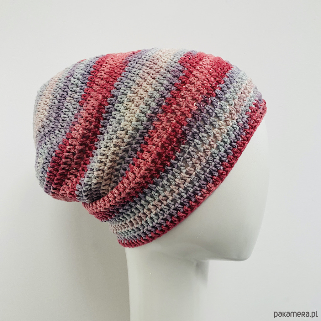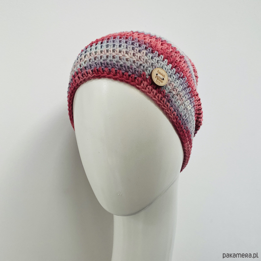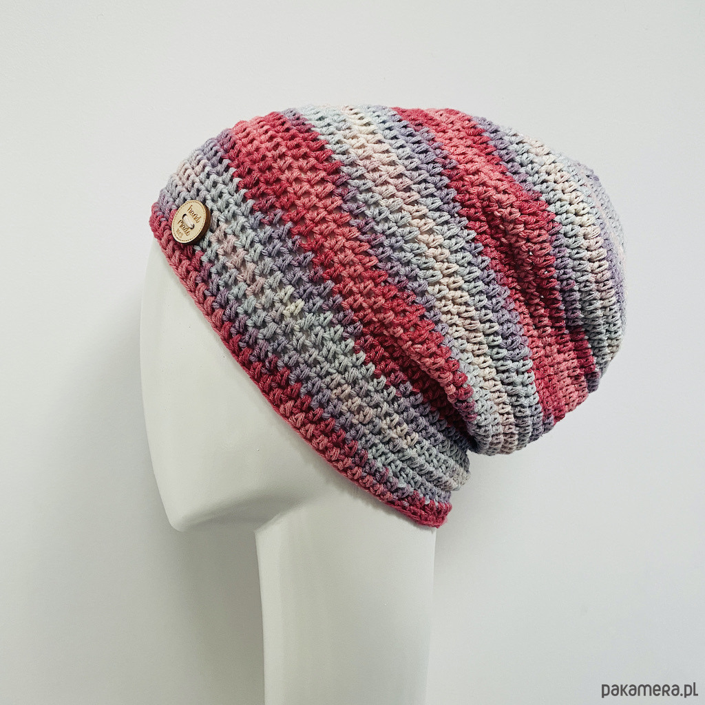 Czapkę wykonałam z wysokiej jakości włóczki bawełniano-akrylowej, która zapewnia wygodę noszenia przez cały dzień.