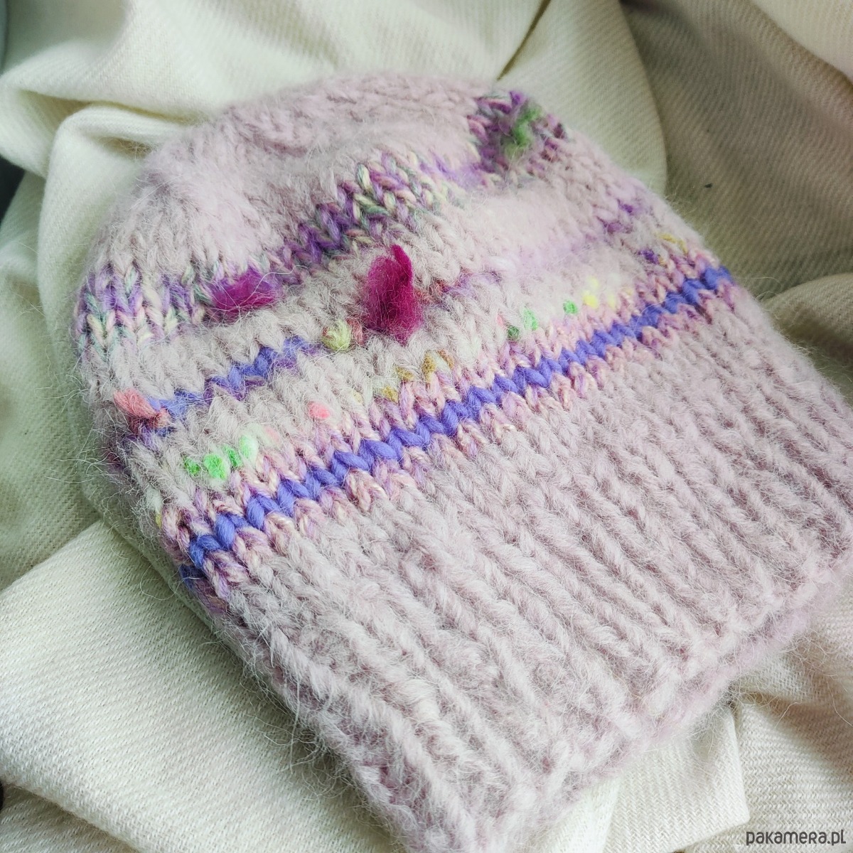 Czapka z alpaki i merynosa różowa ozdobna FANTASIA