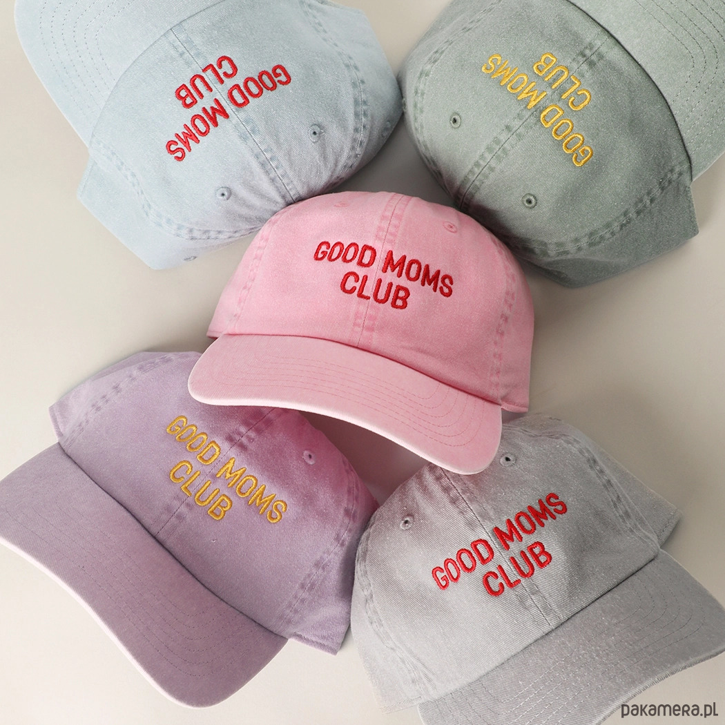 Osobisty detal: Precyzyjny haft "good moms club" sprawia, że czapka jest wyjątkowa i idealnie nadaje się na prezent.