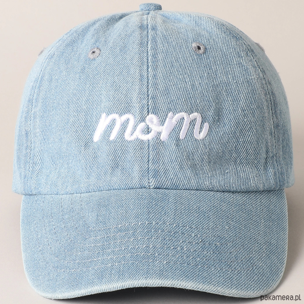 Kolor: Jasny Jeans / Biały haftStylowy dodatek dla każdej mamy – Czapka "Mom" Light Jeans