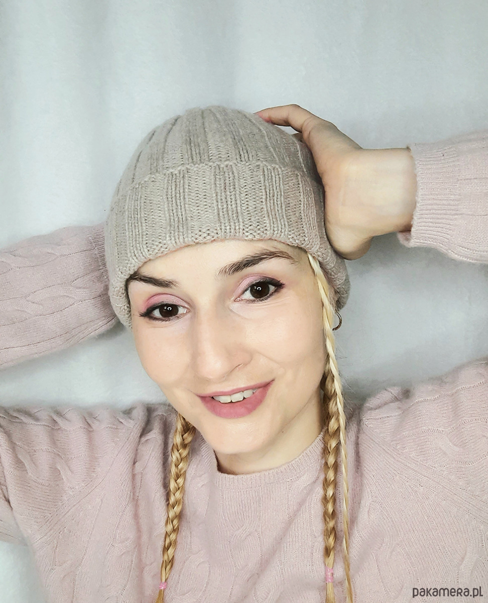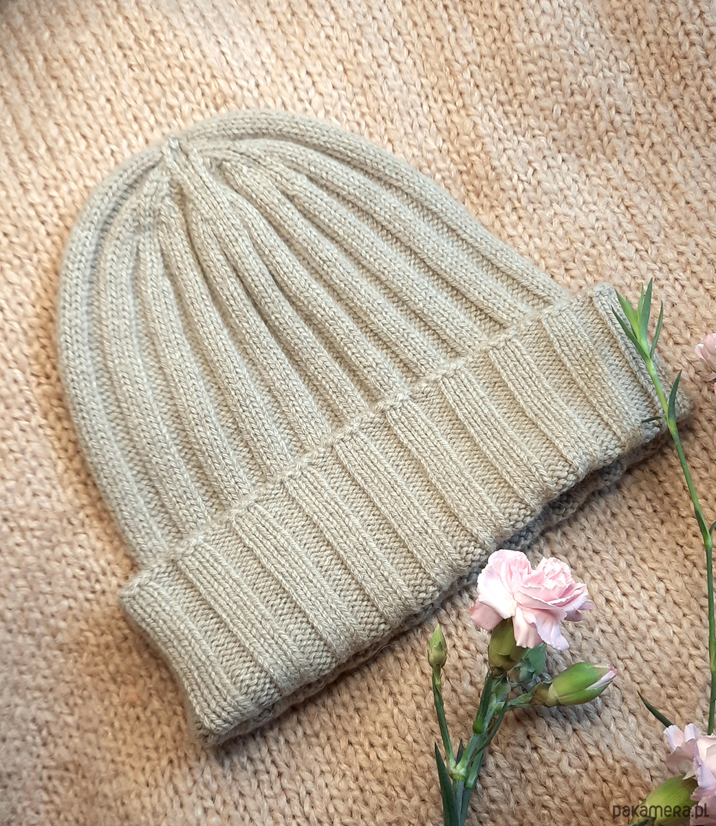 Czapka z naturalnego kaszmiru przyjemnie otula i daje rozkoszne ciepło.