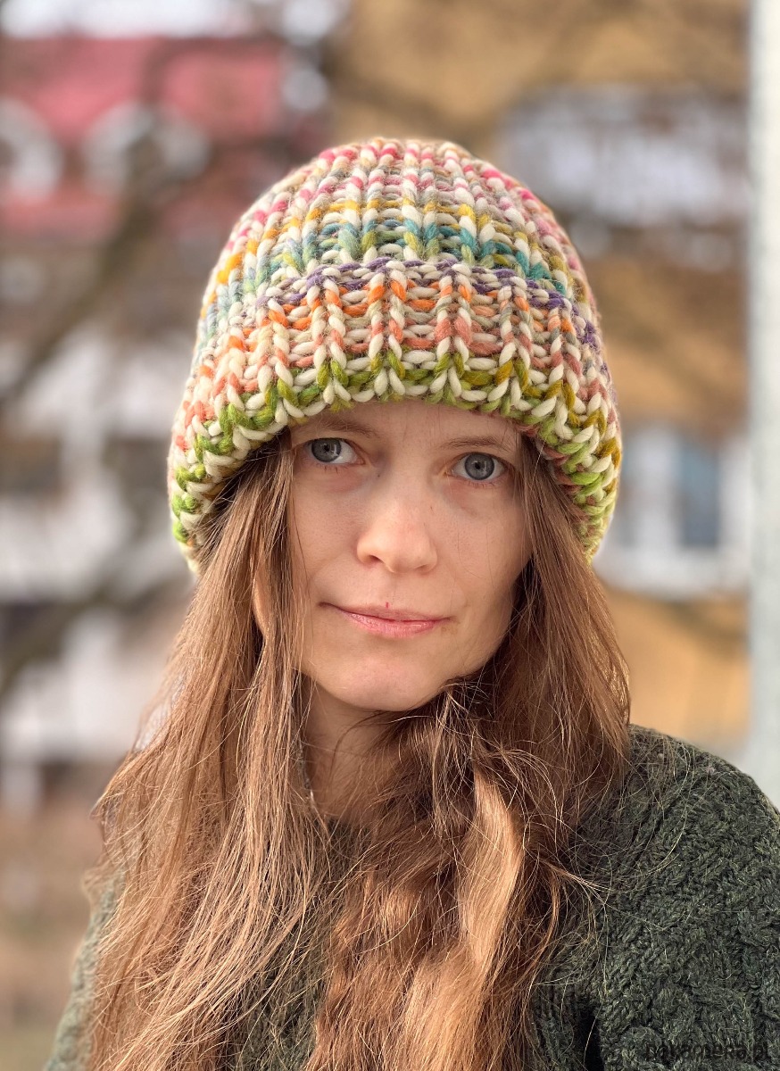Gruba, ciepła zimowa czapka została wykonana z wełny merynosa 100% w żywej kolorystyce. Włóczka wysokiej jakości, certyfikowana, pochodzi z Włoch, posiada certyfikat mulessing free.