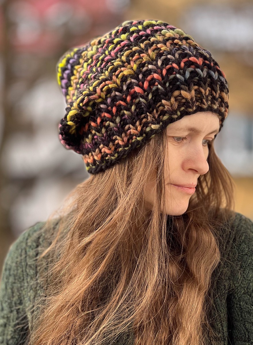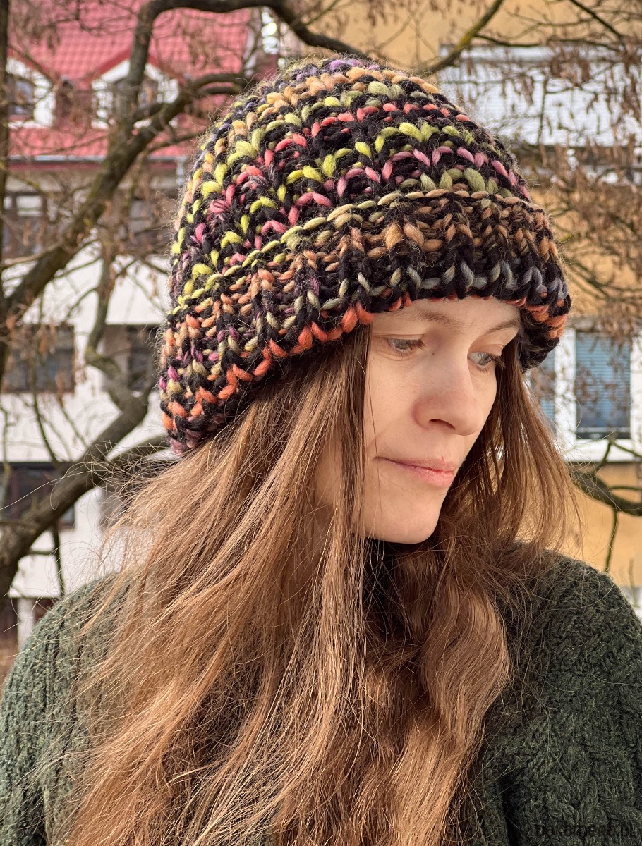 Gruba, ciepła zimowa czapka została wykonana z wełny merynosa 100% w żywej kolorystyce. Włóczka wysokiej jakości, certyfikowana, pochodzi z Włoch, posiada certyfikat mulessing free.