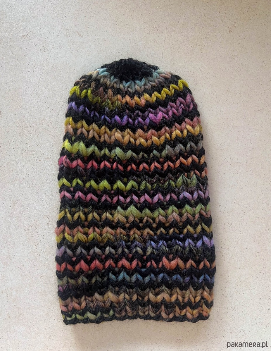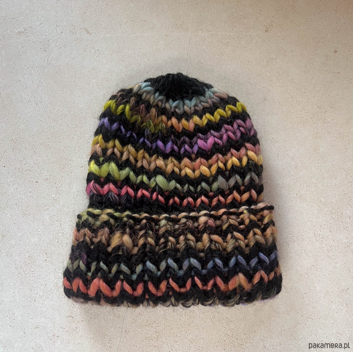 Uwaga w każdej czapce kolory układają się trochę w innej kolejności. Powtarzają się, jednak układ jest unikatowy w każdej czapce.