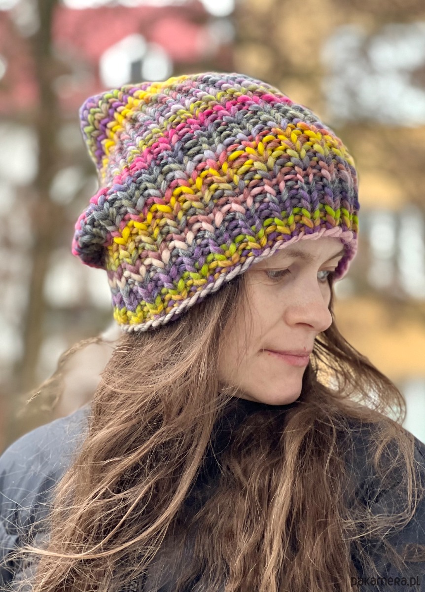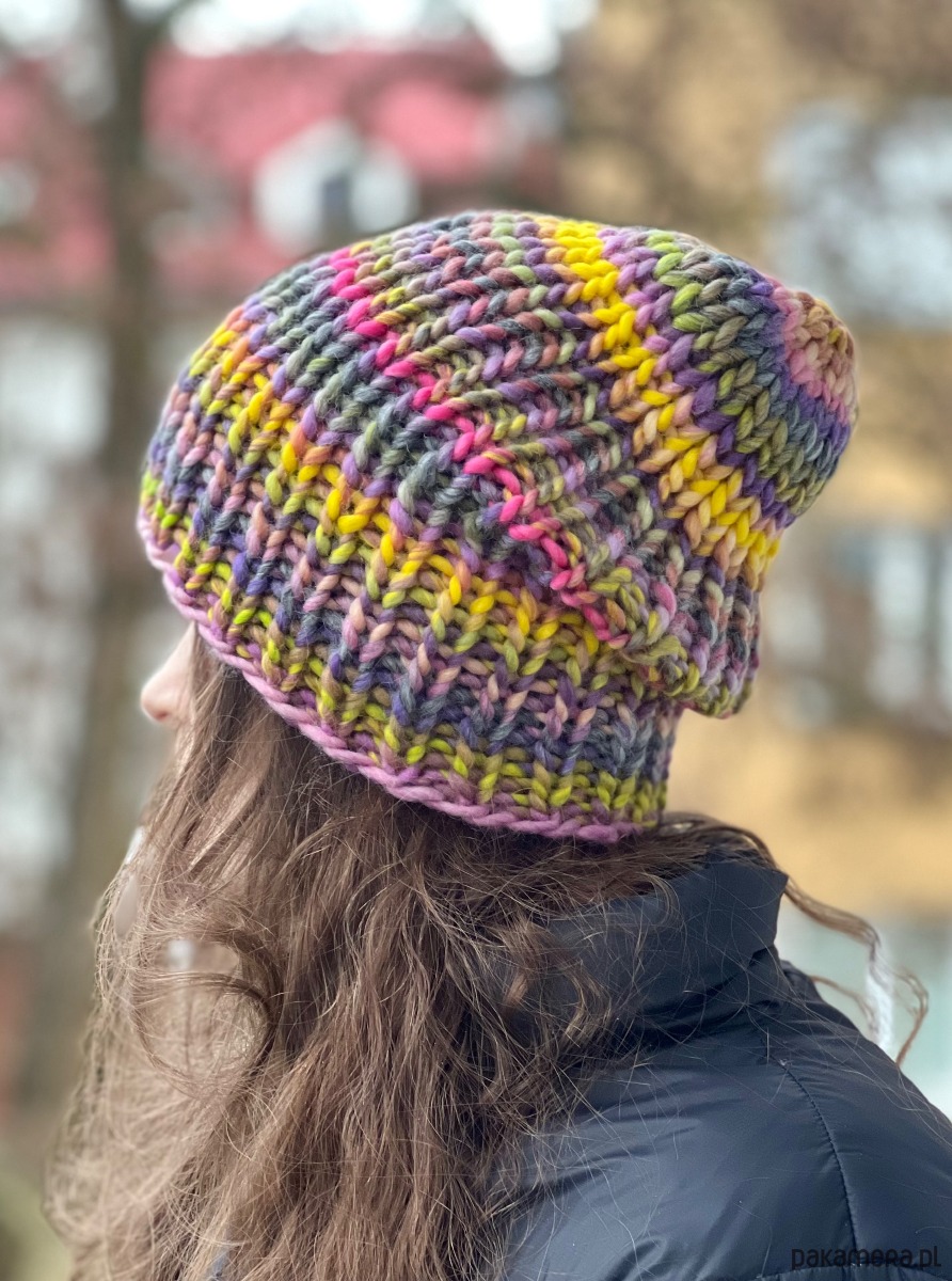 Uwaga w każdej czapce kolory układają się trochę w innej kolejności. Powtarzają się, jednak układ jest unikatowy w każdej czapce.