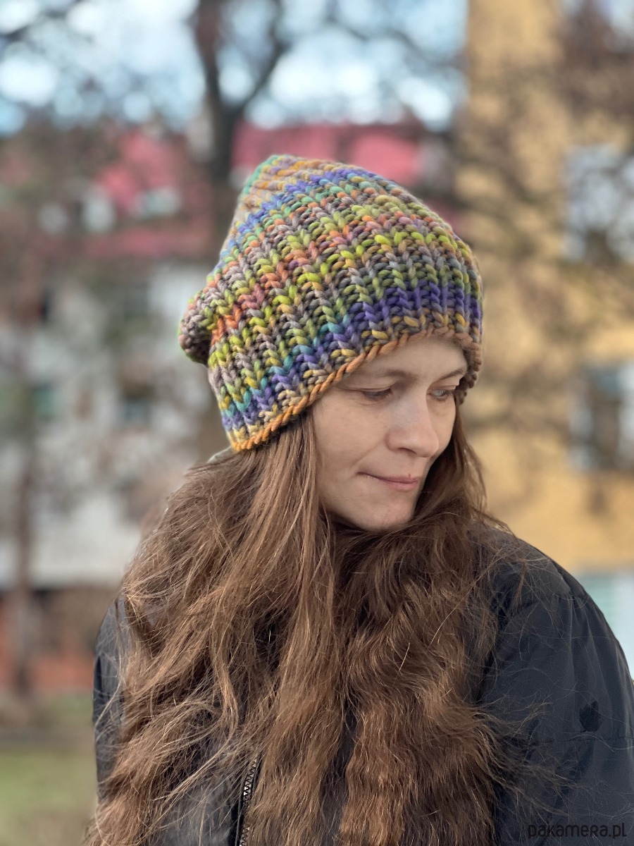 Uwaga w każdej czapce kolory układają się trochę w innej kolejności. Powtarzają się, jednak układ jest unikatowy w każdej czapce.