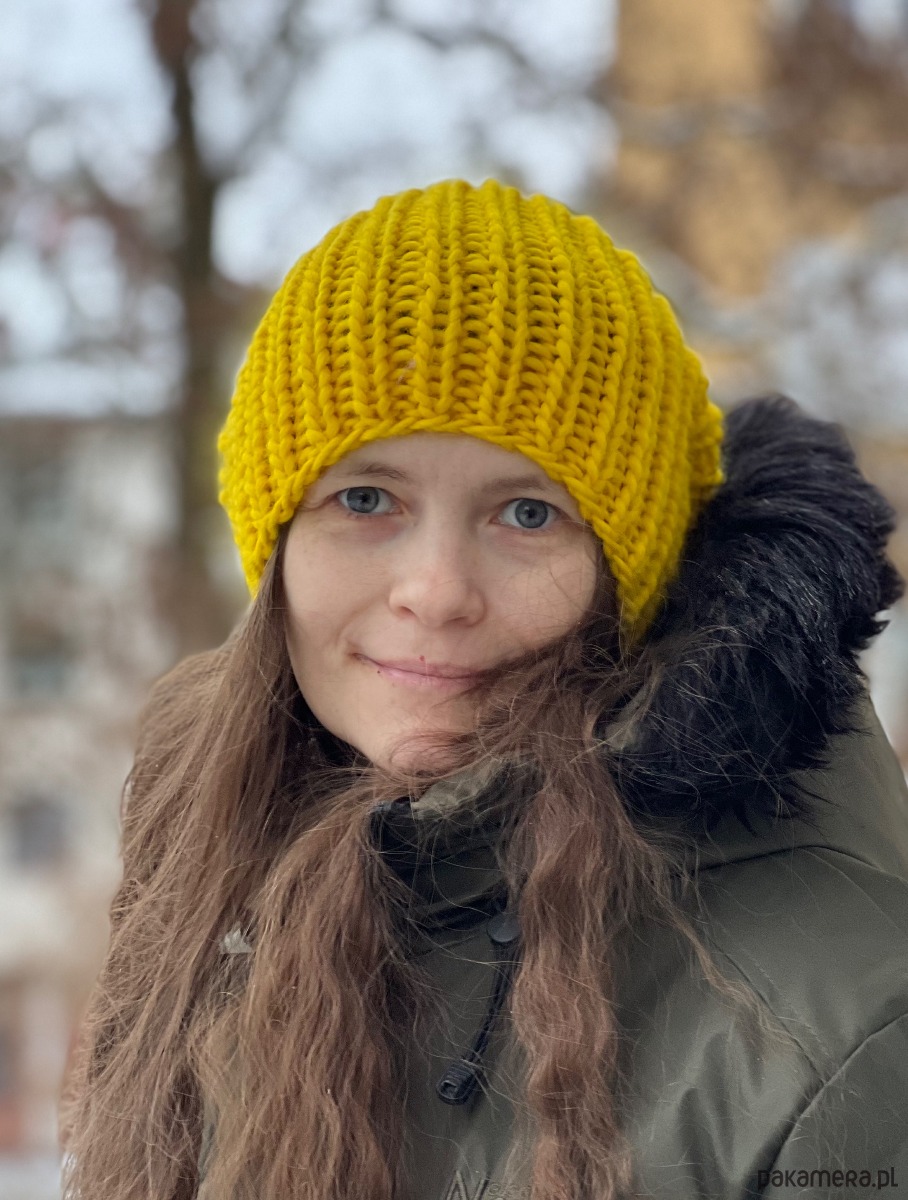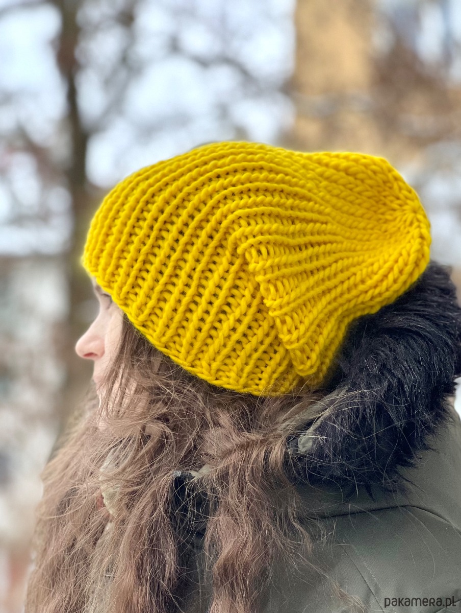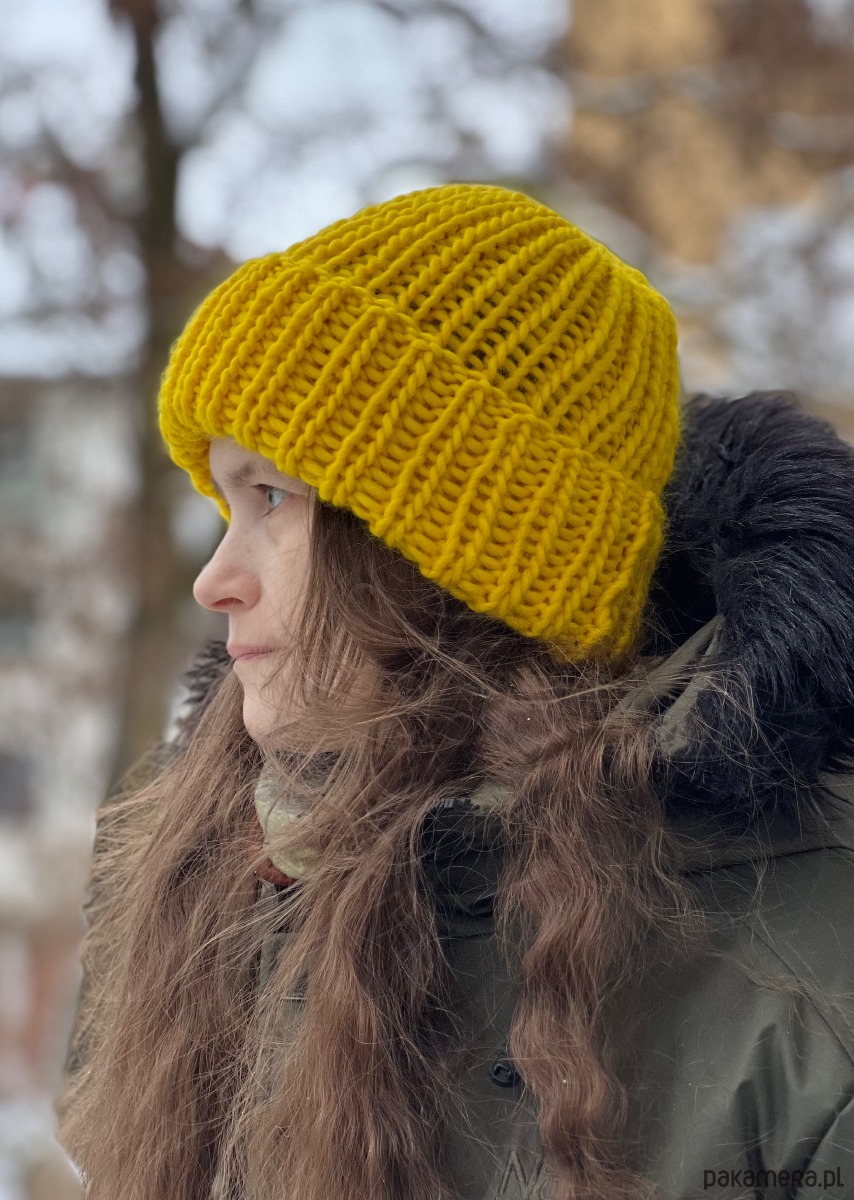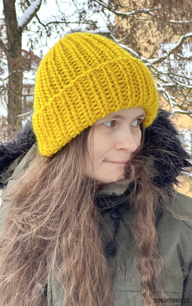 Gruba, ciepła zimowa czapka została wykonana z wełny merynosa 100% w żywej kolorystyce. Włóczka wysokiej jakości, certyfikowana, pochodzi z Włoch, posiada certyfikat mulessing free.