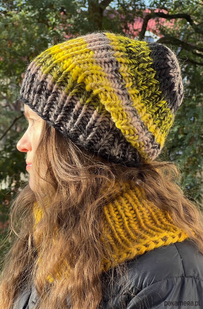 Czapka z merynosa 100% żółto czarny mix