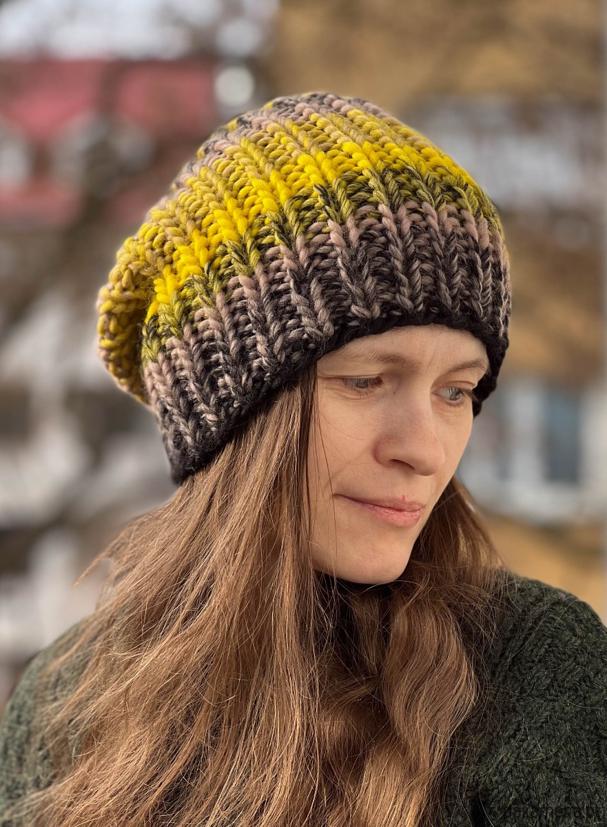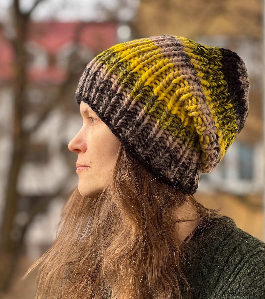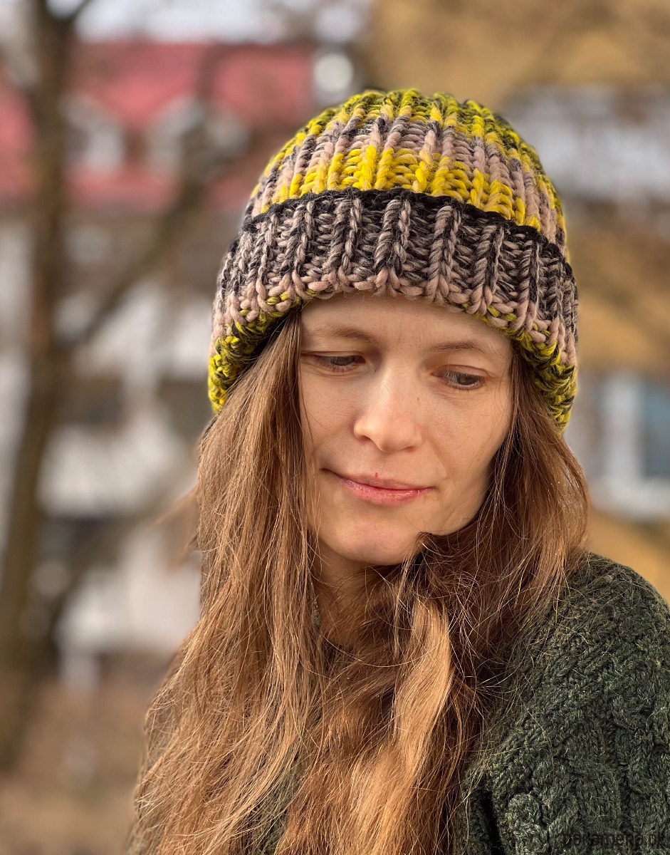 Gruba, ciepła zimowa czapka została wykonana z wełny merynosa 100% w żywej kolorystyce. Włóczka wysokiej jakości, certyfikowana, pochodzi z Włoch, posiada certyfikat mulessing free.