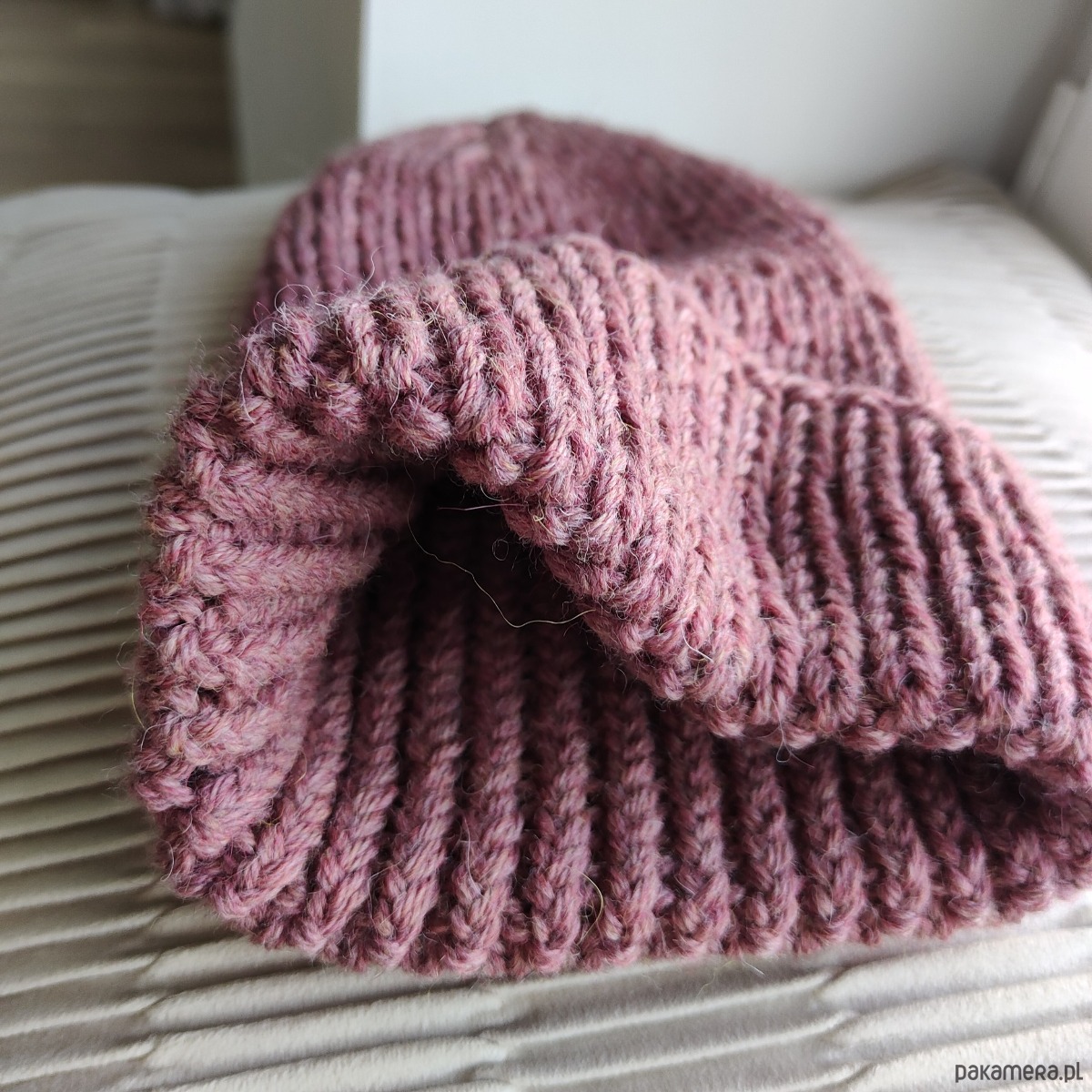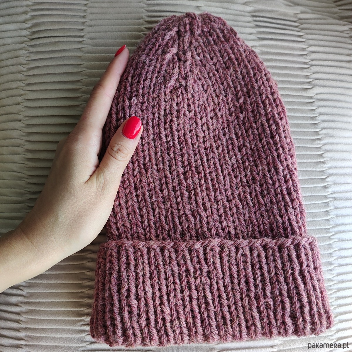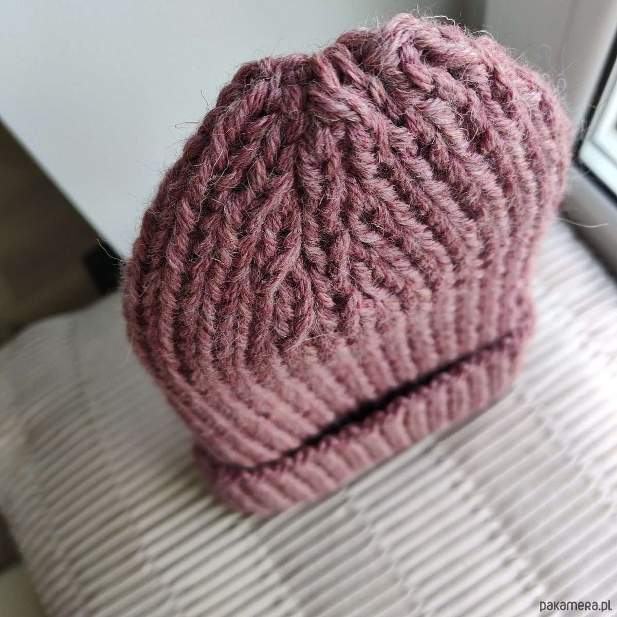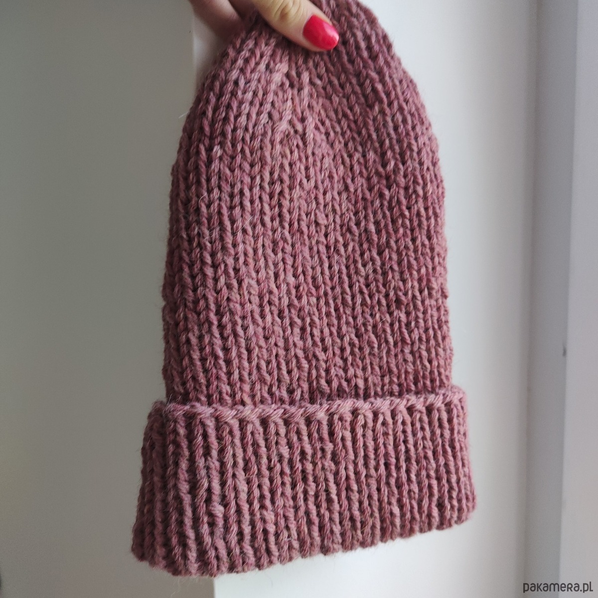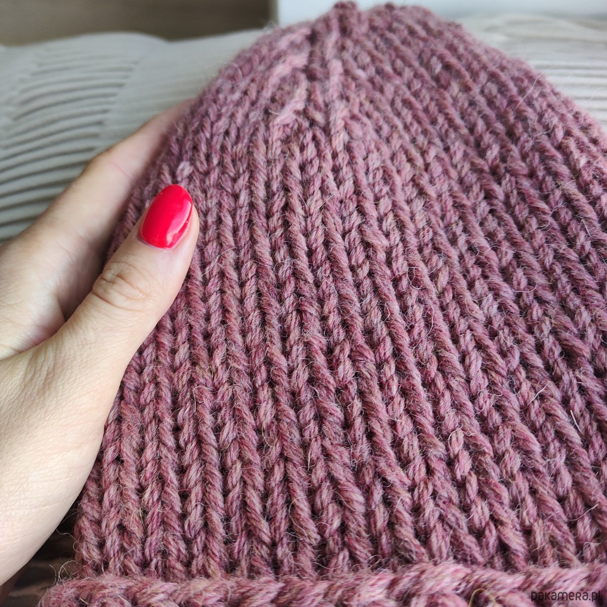Czapka z wełny alpaki i owczej brudny róż