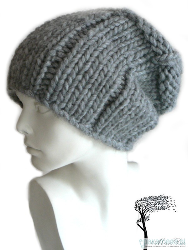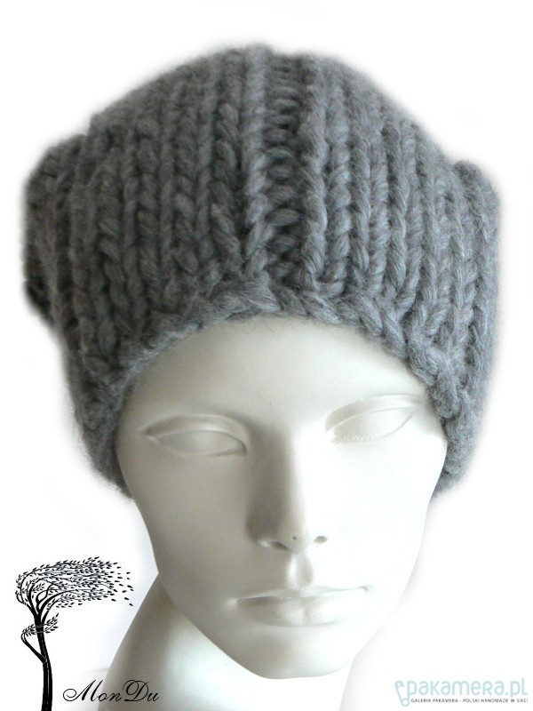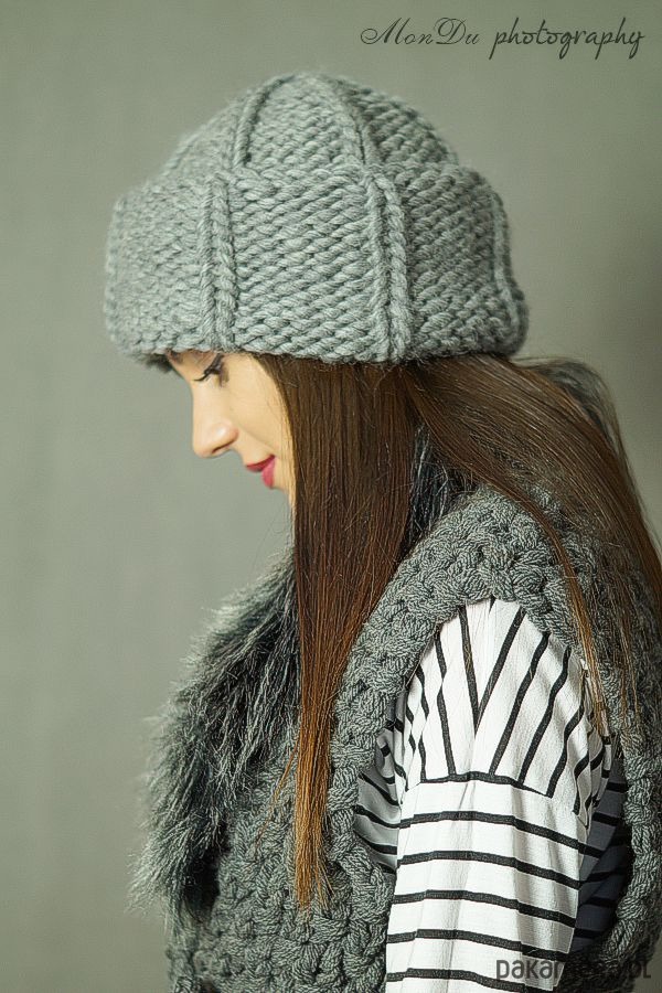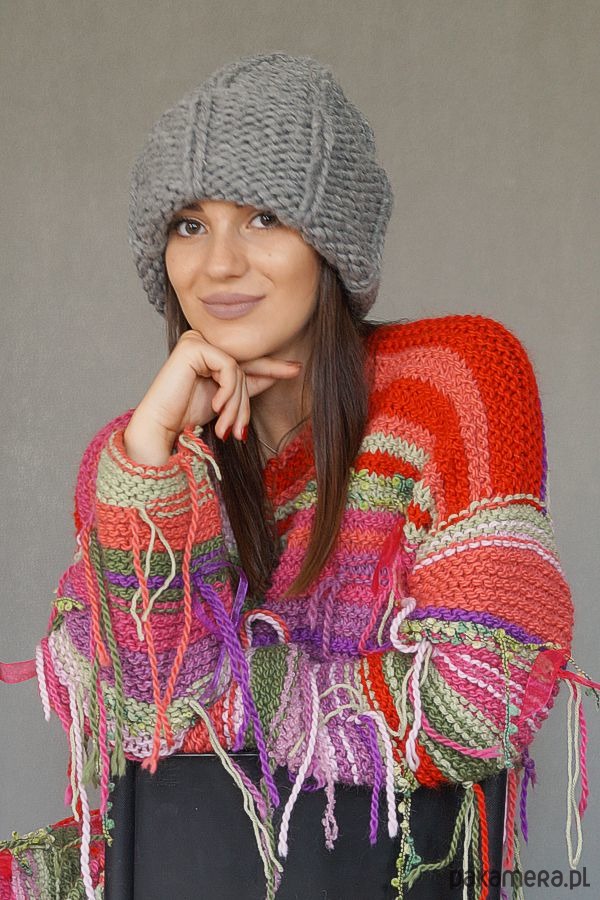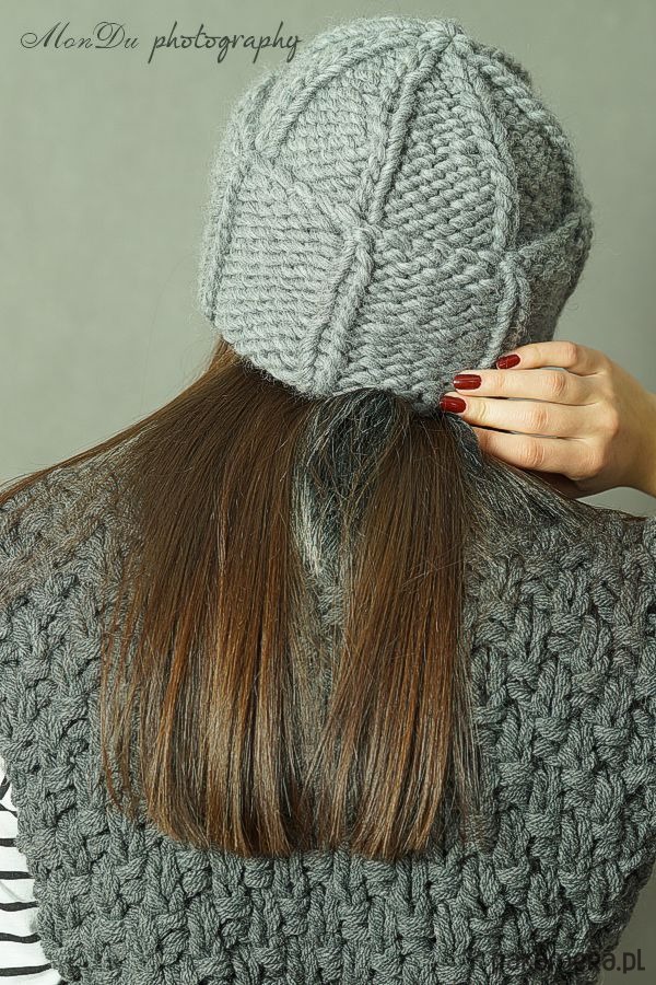 Zastosowane modne grube ściegi oraz fason czapki, dają różne możliwości jej noszenia.