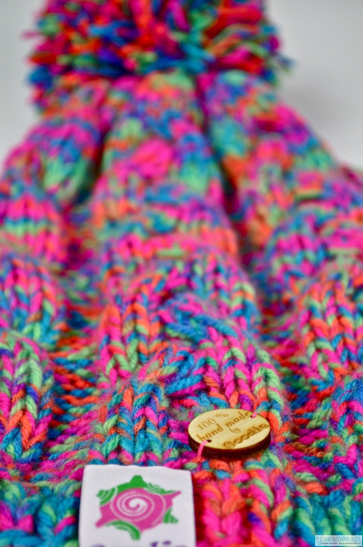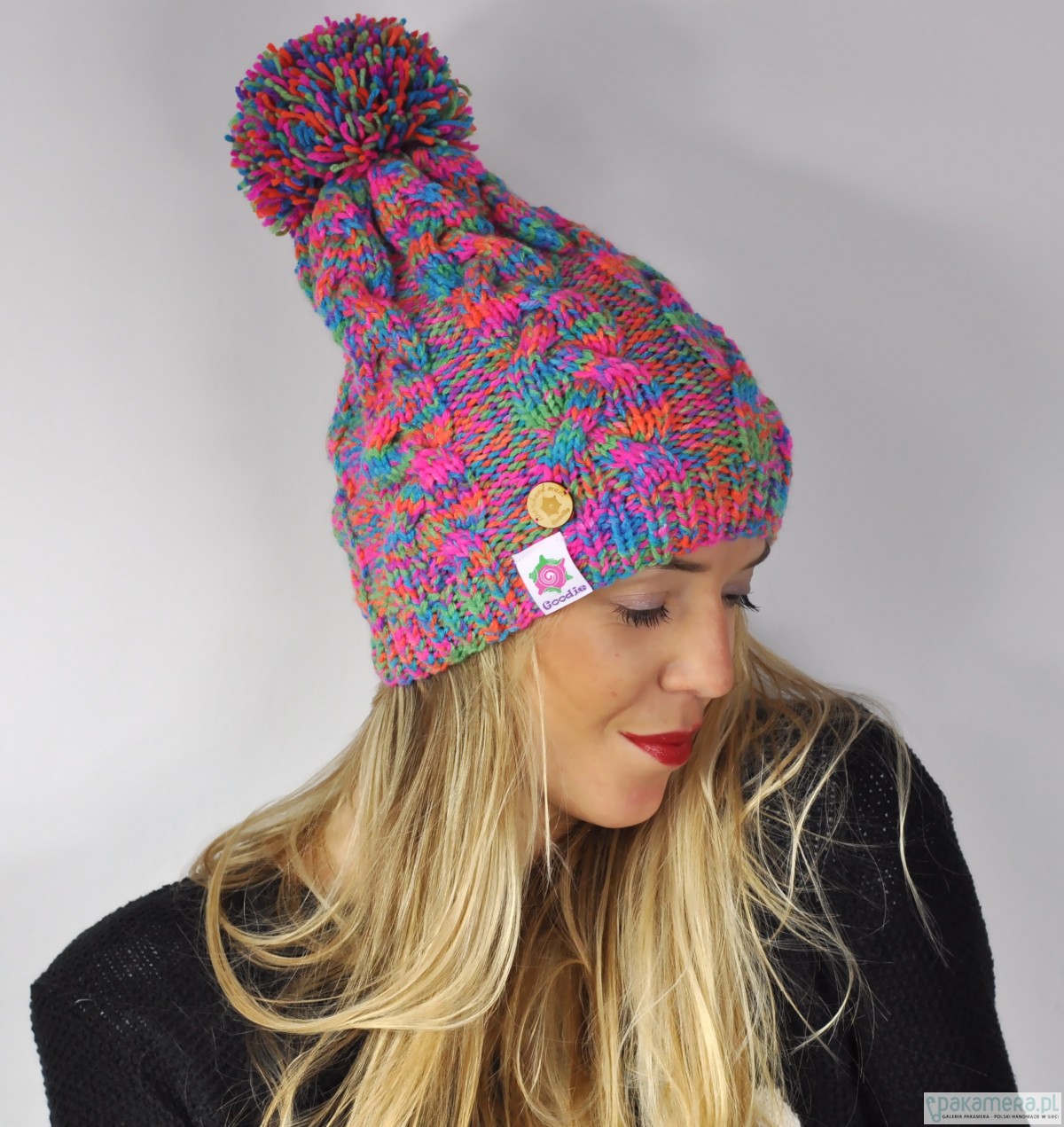 Kolekcja Goodie HANDMADE to najciekawsze dodatki tej zimy, a do tego wszystko ręcznie robione na drutach lub szydełku z najwyższej jakości niemieckich włóczek ! Opis: * Czapka ręcznie robiona na drutach, splot warkocz z pomponem. * Wielokolorowa, kolory: włóczka rainbow ( mieszanka fioletu, różu, zielonego, niebieskiego i pomarańczu) * Wykonana z akrylu 100%, niemechacąca się, niegryząca. * Długość czapki 27 cm, obwód 54-58 cm. * Miękki splot. * Metka wszyta po prawej stronie, mały drewniany pin doszyty nad metką. Dodatki Goodie idealnie pasuje na zimowe szaleństwa na śniegu jak i do codziennej garderoby w jesienne dni i wieczory. Goodie HANDMADE to marka tworząca pełne koloru, niepowtarzalne gadżety. Wszystkie nasze wyroby są zazwyczaj dostępne w pojedynczych sztukach więc trudno ci będzie znaleźć drugą osobę w takim samym ! Każdy z nich posiada mały pin potwierdzający