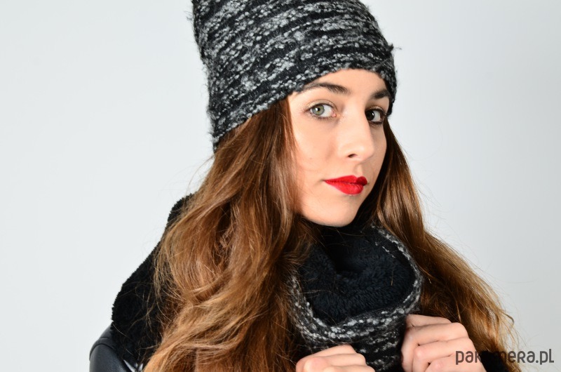 Czapka wykonana z dzianiny; podwójna. W połączeniu z kominem, tworzy idealny dodatek do różnych stylizacji.