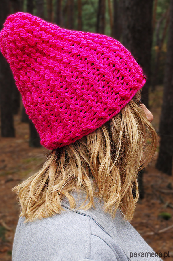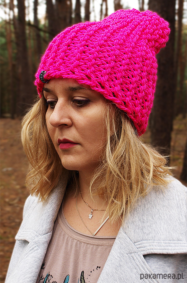 Ciepła czapka zimowa w kolorze neonowego różu. Idealna na chłodne dni. Miła w dotyku, "nie gryzie". Hand made.
