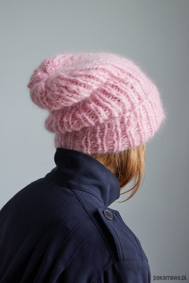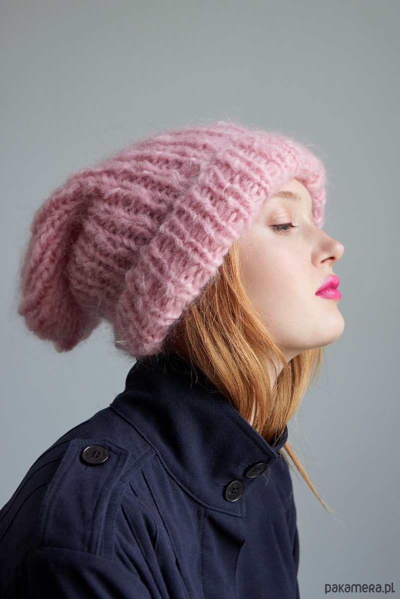 Oversizowa czapka z miękkiego i puszystego moheru. Lekka i ciepła, a przy tym bardzo twarzowa.