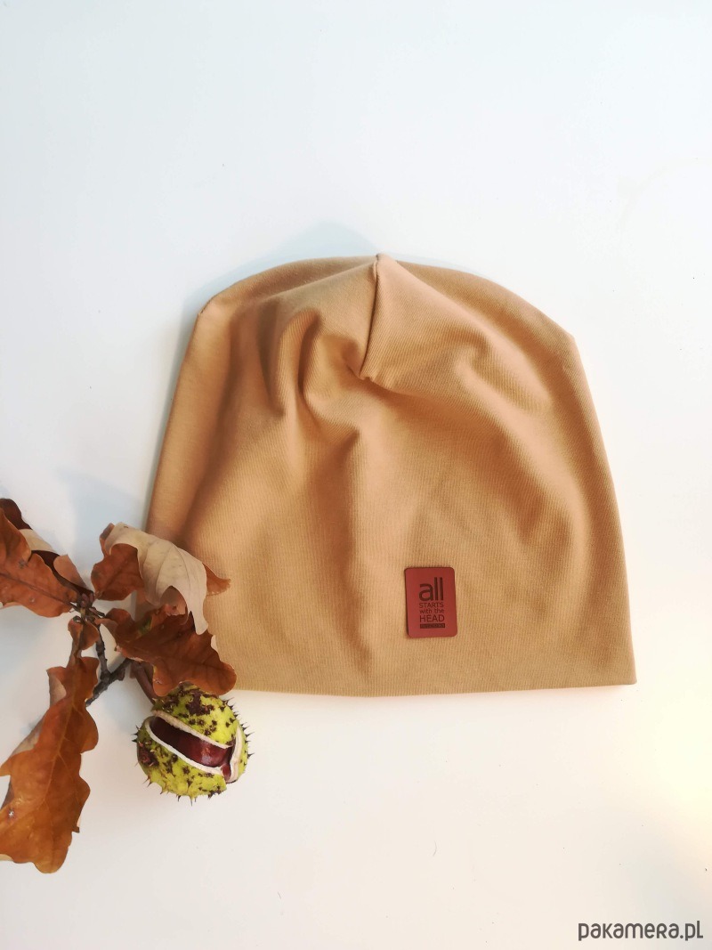 Czapka wykonana z dzianiny: podwójna. Naszywka z ekoskóry. Minimalistyczna forma będzie świetnie pasować do różnych stylizacji, bomberki czy praktycznej parki.