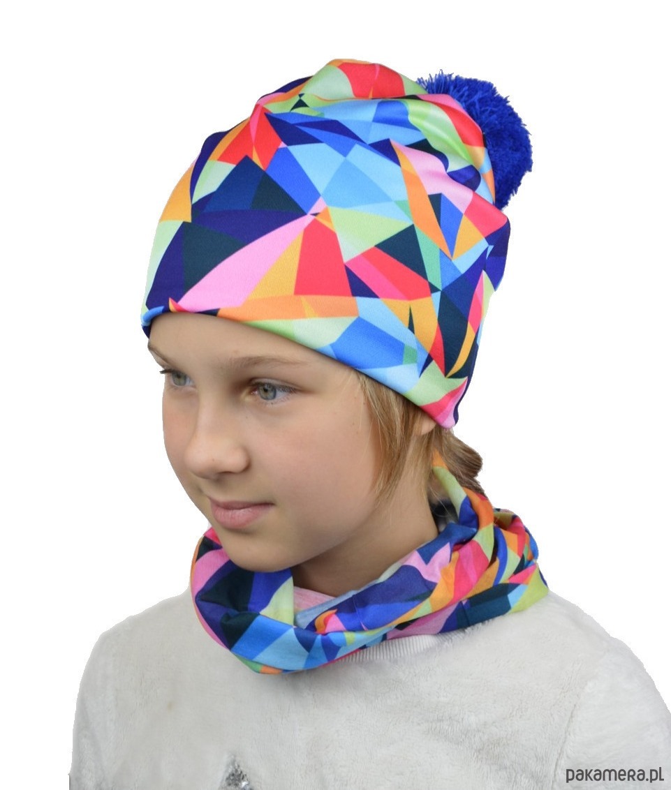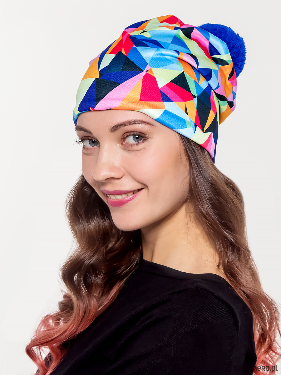 Czapka z dzianinowym pomponem z elastycznego materiału z nadrukiem 100% poliester, od środka podszyta ciepłym micropolarem.