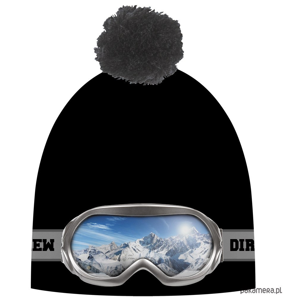 Czapka z dzianinowym pomponem z elastycznego materiału z nadrukiem 100% poliester, od środka podszyta ciepłym micropolarem.