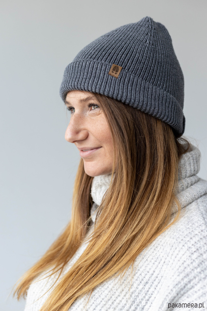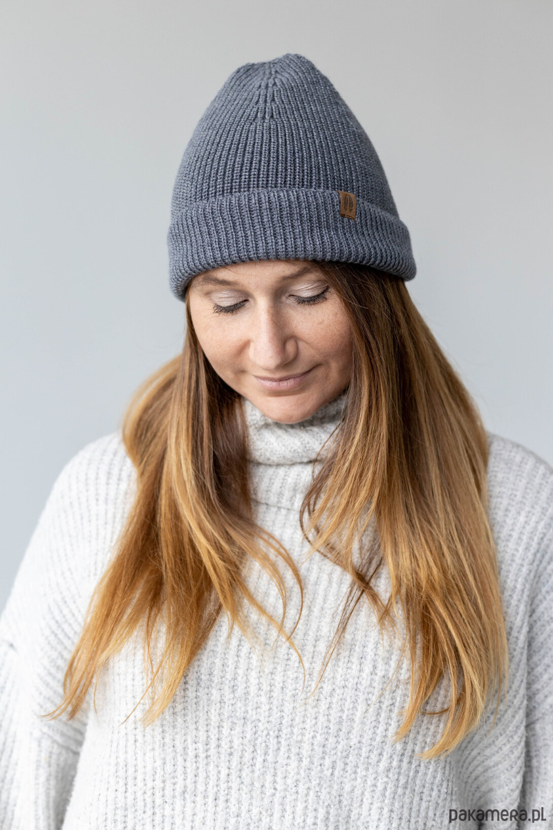 Uniwersalna czapka z wełny merino, wykonana charakterystycznym ściegiem zwanym "perłą", który bardzo ładnie się prezentuje. Nie ma typowego grubego ściągacza, ale mimo to, możesz ją nosić zarówno wywiniętą, jak i odwiniętą, w zależności od upodobań. Dobrze dopasowuje się do kształtu głowy. Od Ciebie zależy jaki styl noszenia przyjmiesz - czapka może być noszona zarówno odwinięta jak i wywinięta. Znana jest również pod pseudonimami: czapka rybaka, dokerka, czapka złodziejka :)