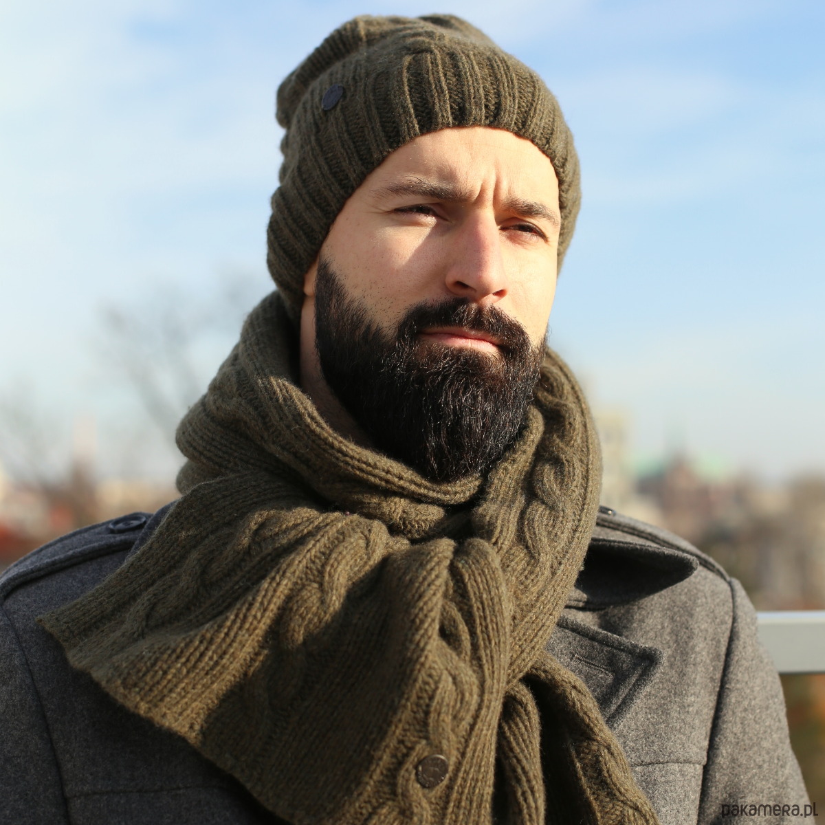 Komplet z owczeJ wełny czapka i szalik KHAKI