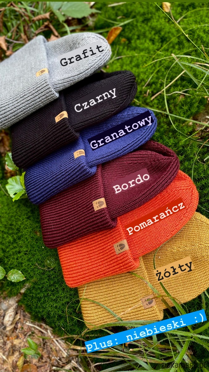 NOWOŚĆ - duża czapka 100% wełny merino mulesing free z wysokim ściągaczem.